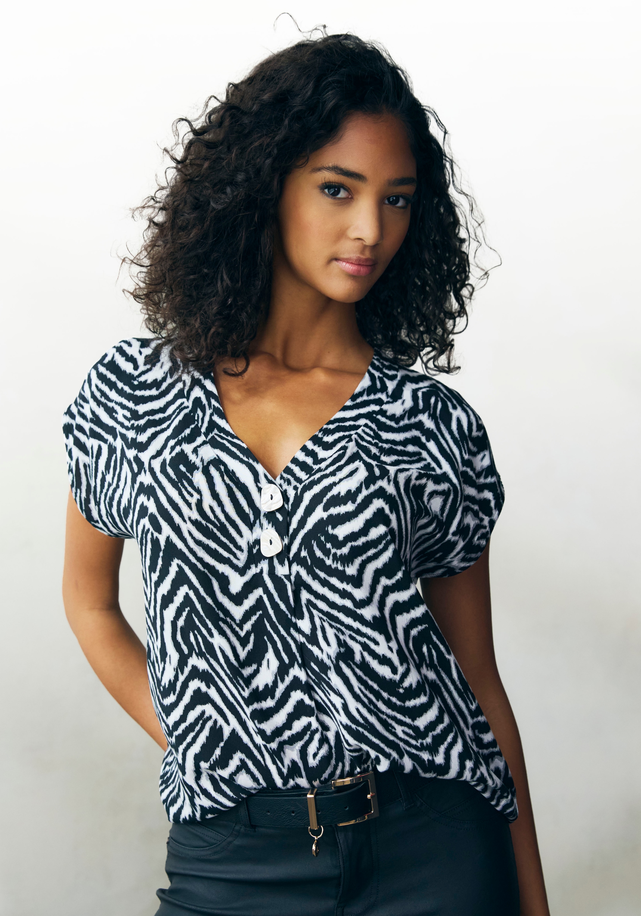 - Schlupfbluse mit Zebraprint und modischen Knöpfen, Kurzarmbluse, sommerlichLASCANAAktueller Preis46,99 €
