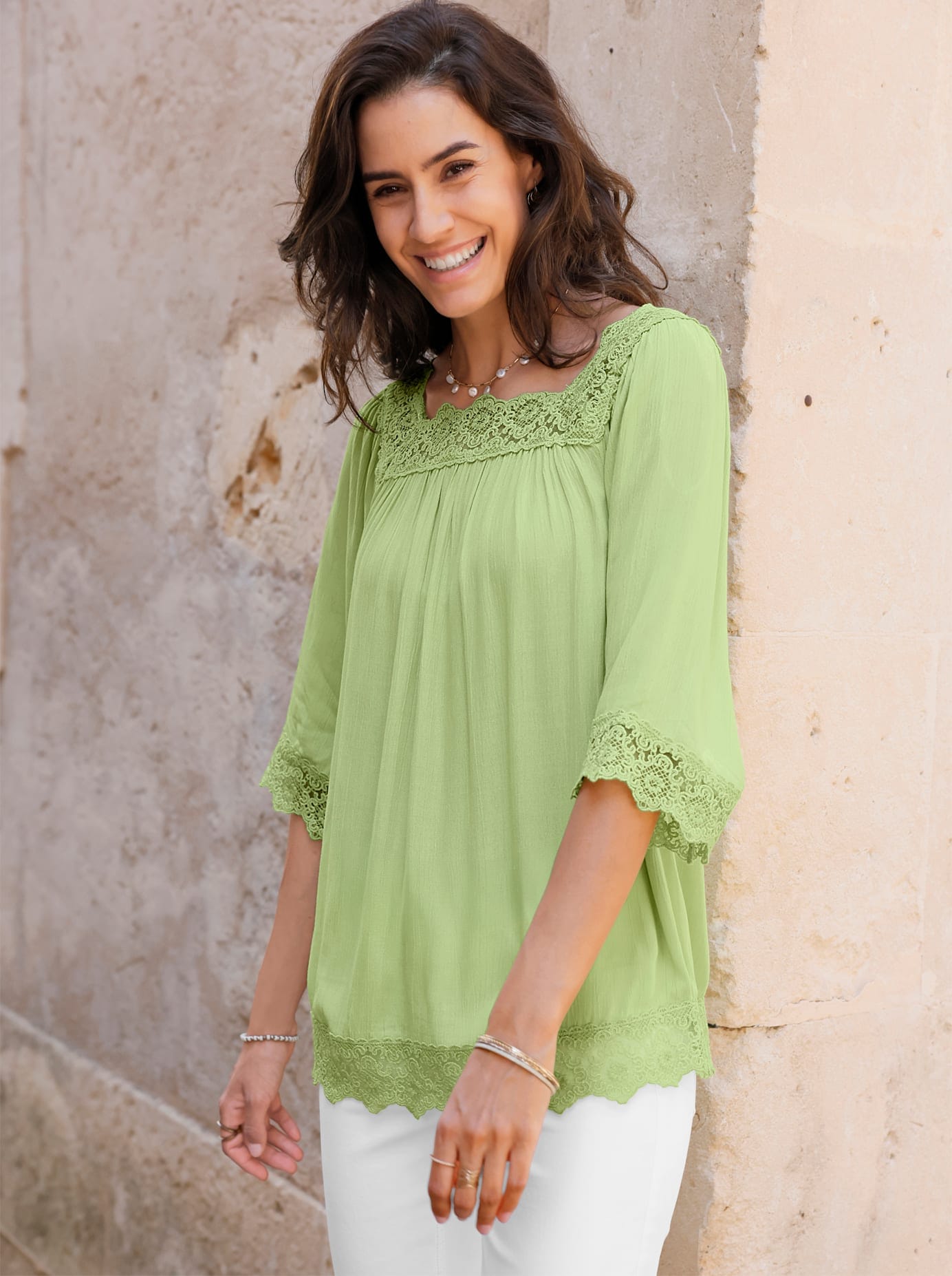 + Farben - Blusentop Sommmertop mit Häkel-Details an der SchulterQSAktueller Preis29,99 €
