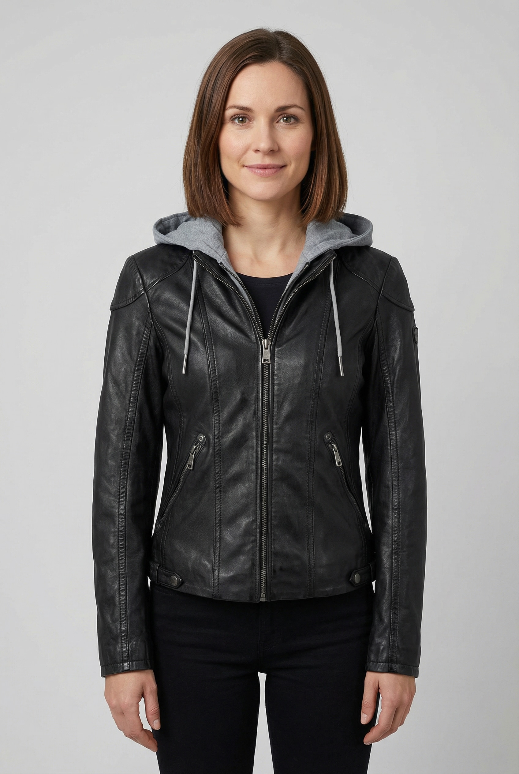 - Lederjacke »Nola LEGV« mit Kapuze mit abnehmbarer Jersey-KapuzeMauritiusUrsprünglicher PreisUVP 249,90 €Rabatt- 125,91 €Aktueller Preis123,99 €