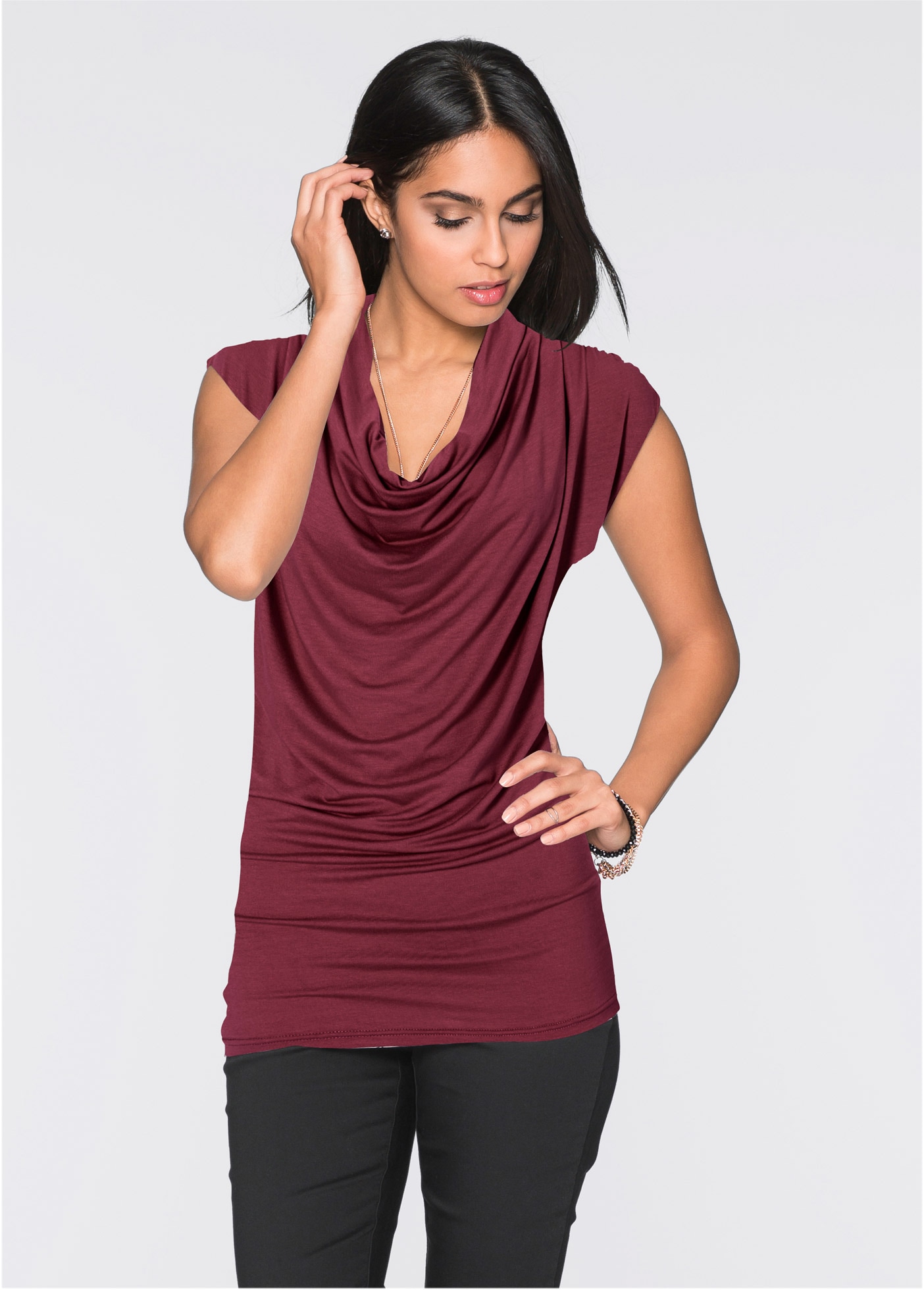 - T-Shirt figurbetonte Passform, mit Wasserfallkragen und RaffungenbonprixAktueller Preis18,99 €