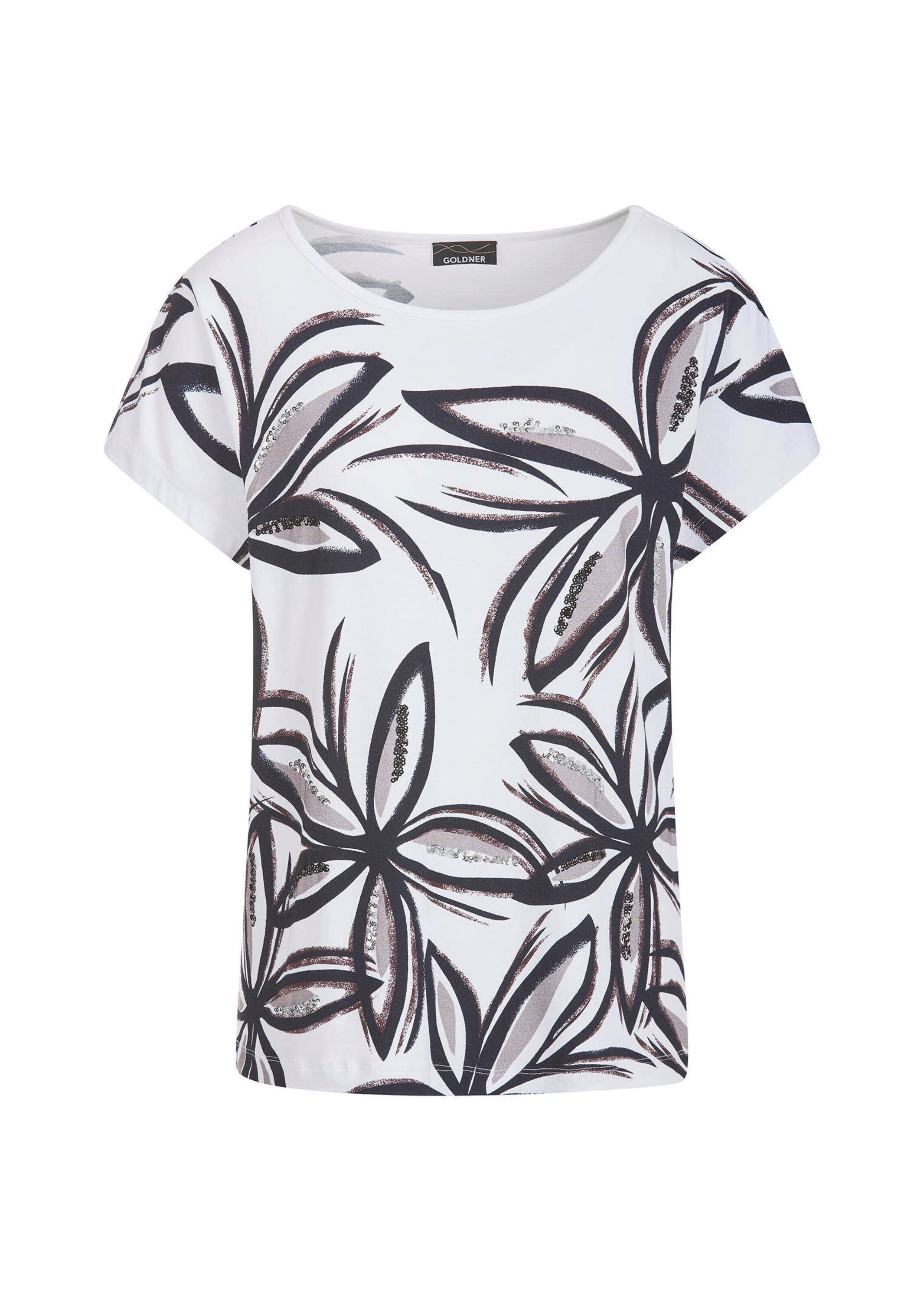 - Kurzarmshirt »Kurzgröße Paillettenshirt mit Blumenmuster« Paillettenstickerei auf dem...GOLDNERAktueller Preisab 69,99 €