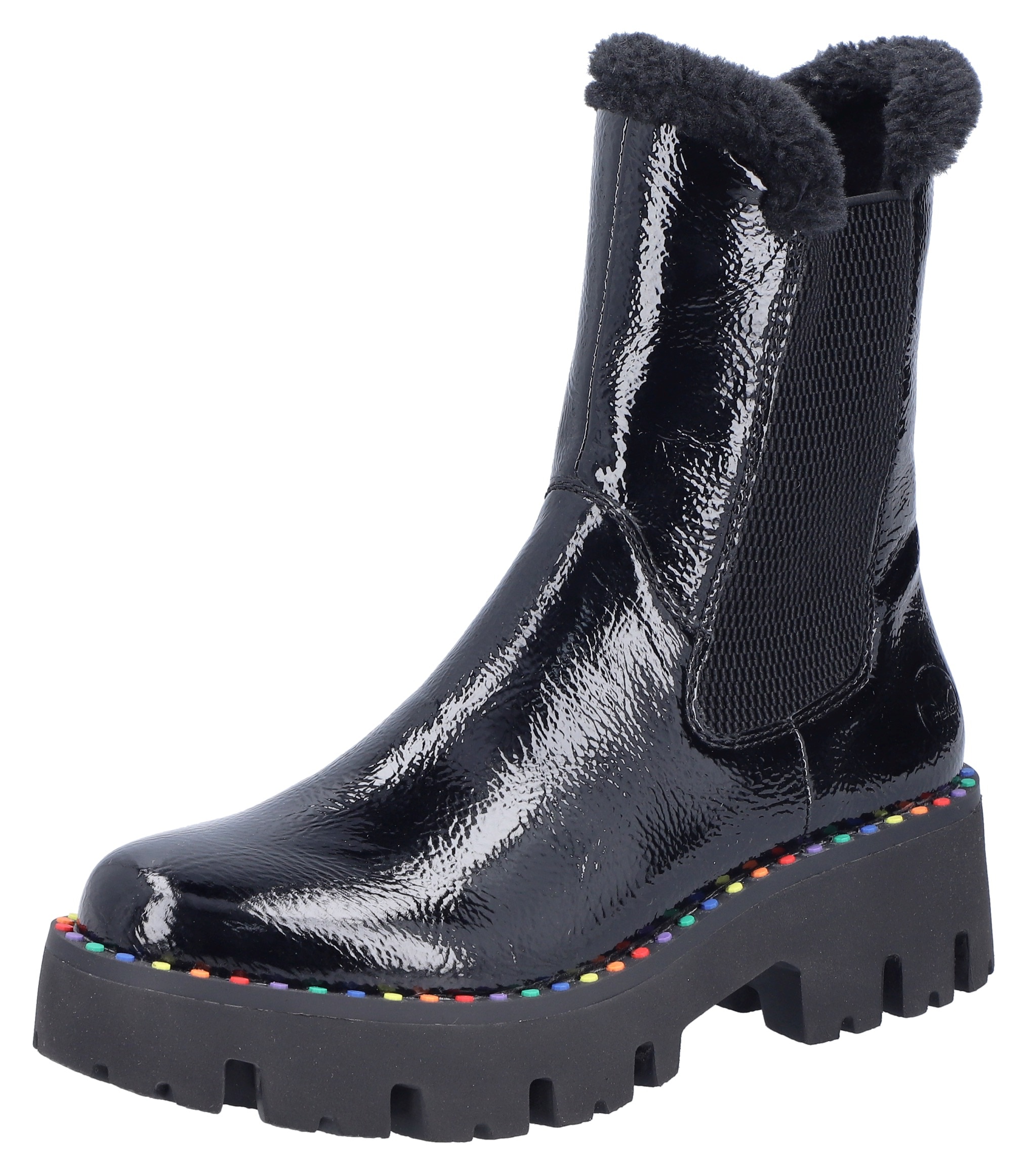- Winterstiefelette Plateauboots, Winterboots, Lack-Stiefelette mit buntem SohlenrandRiekerAktueller Preis79,95 €