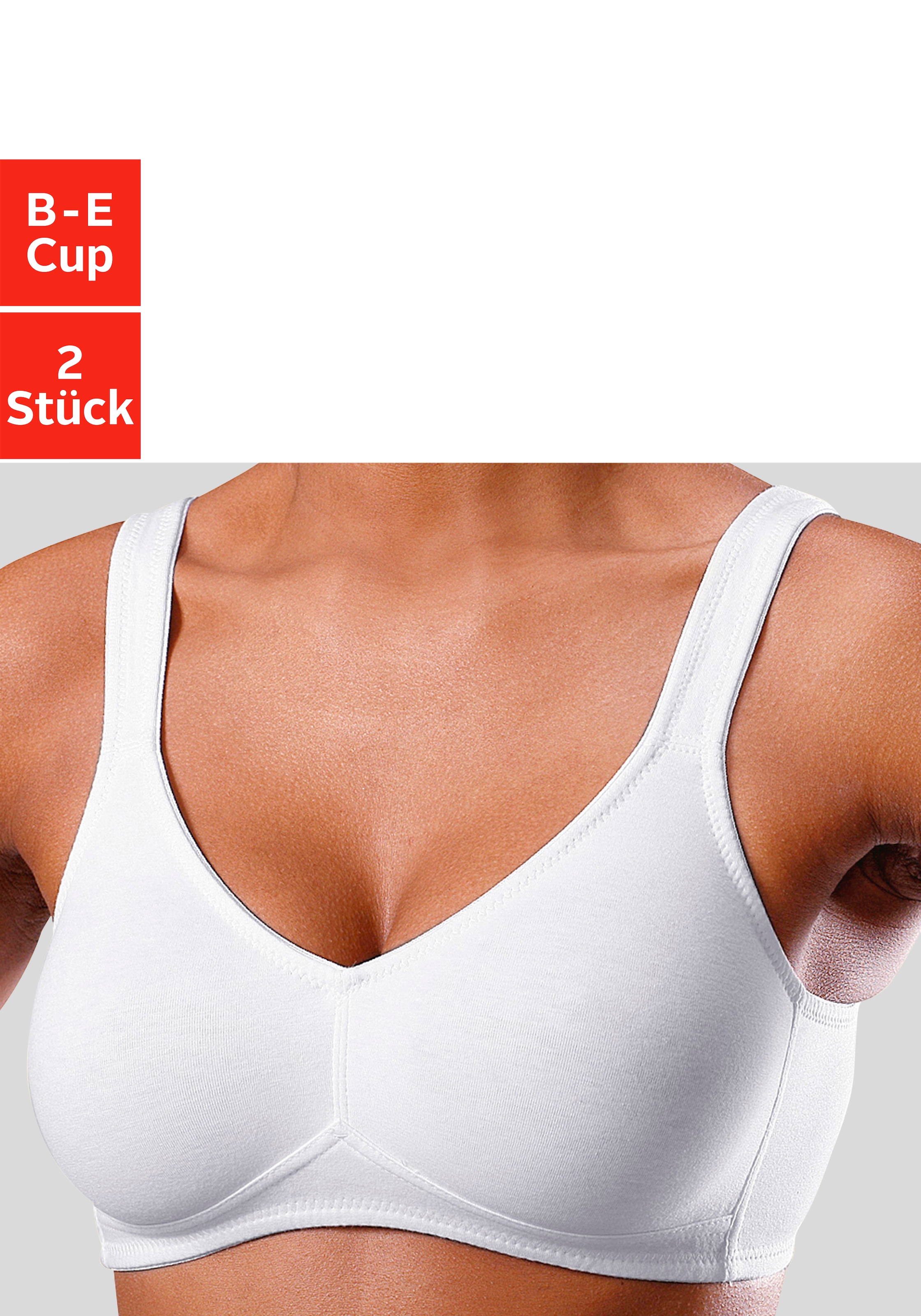 + Farben - T-Shirt-BH Packung, 2 Stück, ohne Bügel aus Baumwolle – auch ideal für große Größenpetite fleurAktueller Preisab 38,99 €Grundpreis19,49 €pro1 Stk+ Farben