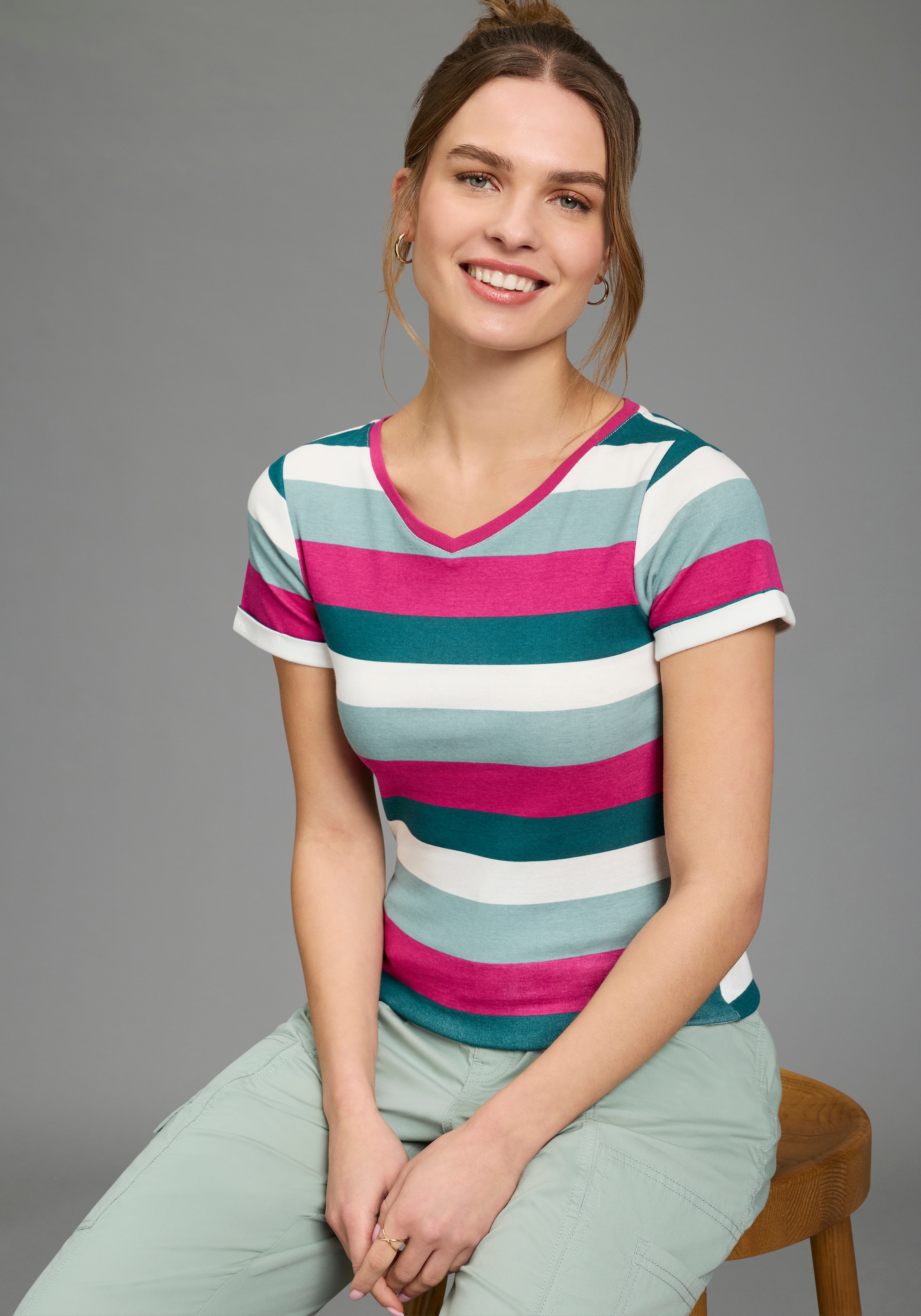 Neu+ Farben - Kurzarmshirt »Shirt Sommerliches Basicshirt mit Rundhalsausschnitt«MADELEINEAktueller Preis64,99 €