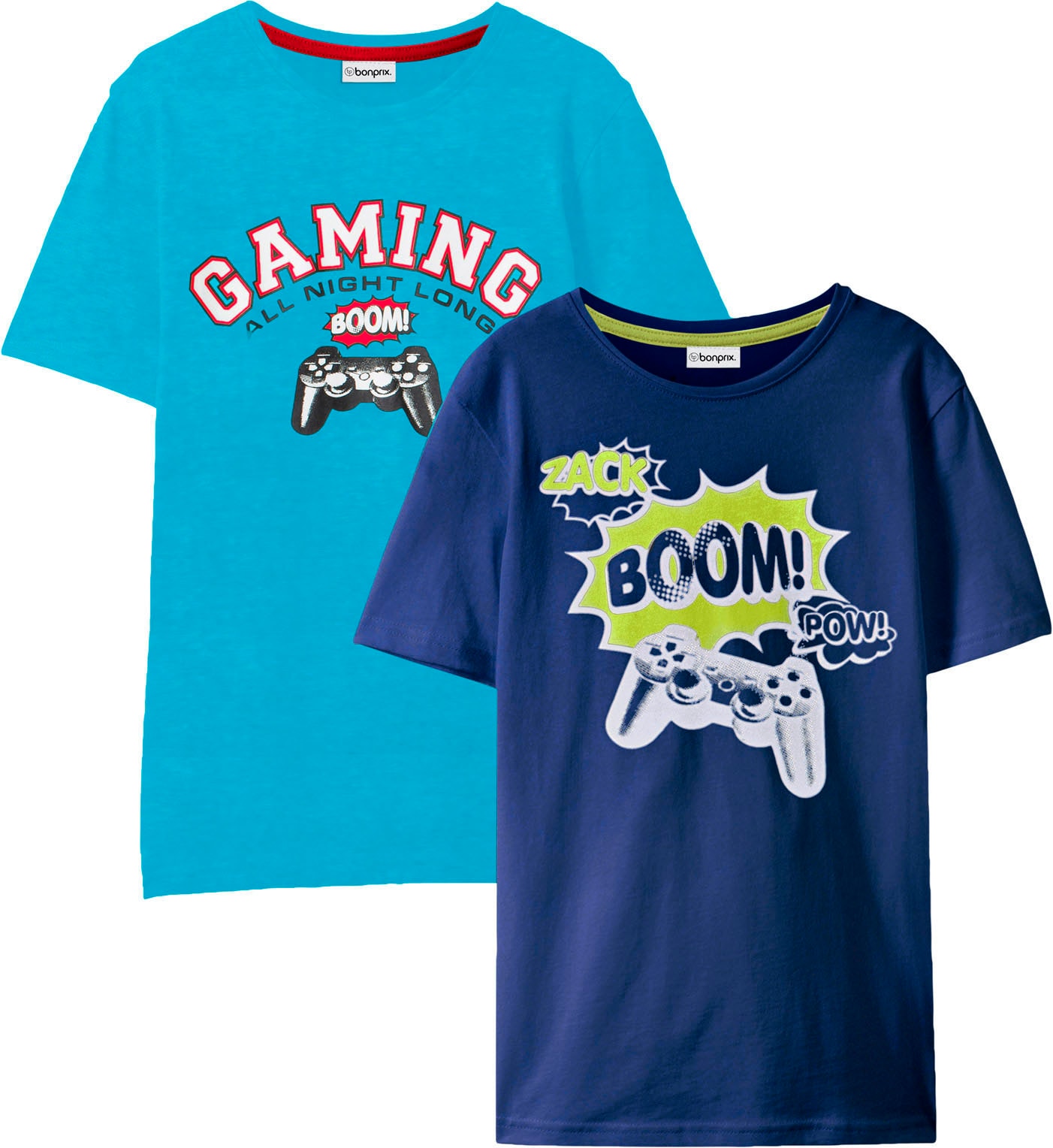 - T-Shirt Packung, 2 Stk. bequeme Passform, Kurzarm, mit Frontdruck, aus BaumwollebonprixAktueller Preis18,99 €Grundpreis9,49 €pro1 Stk