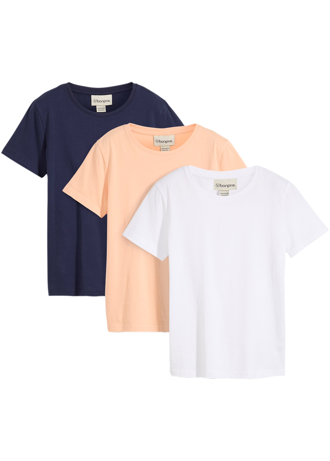 - T-Shirt Packung, 3 Regular Fit, Kurzarm, aus BaumwollebonprixAktueller Preis18,99 €Grundpreis6,33 €pro1 Stk