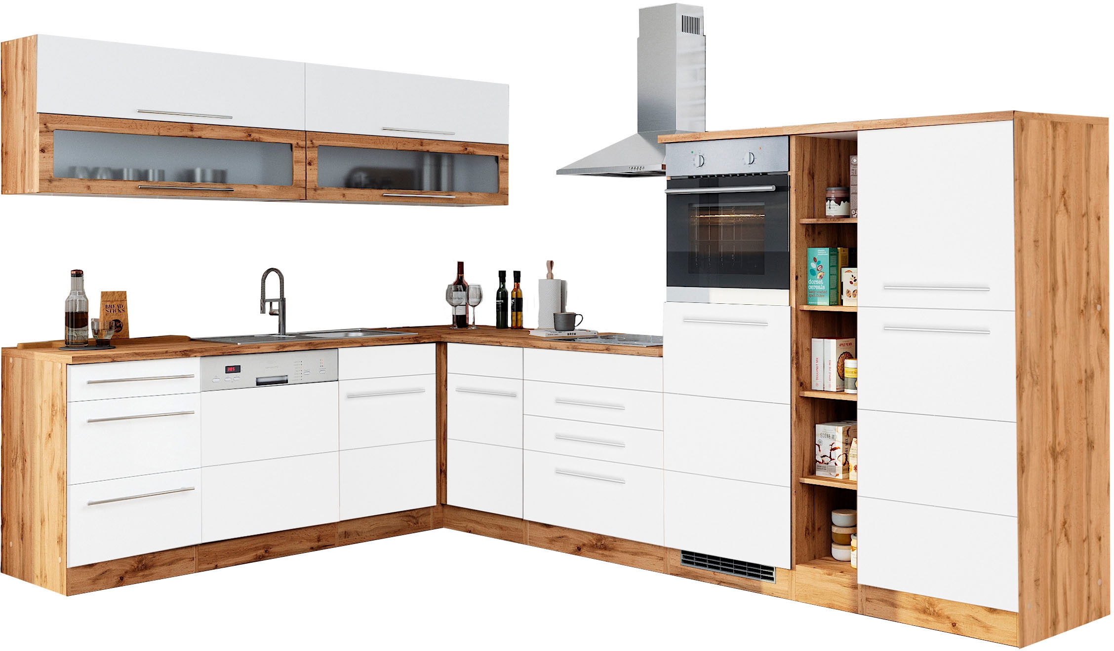 + Farben - Winkelküche »KS-Colmar« mit E-Geräten, Stellbreite 210/300 cmKOCHSTATIONUrsprünglicher PreisUVP 4.889,00 €Rabatt- 1.545,01 €Aktueller Preis3.343,99 €KühlschrankProduktdatenblattBackofenProduktdatenblattGeschirrspülerProduktdatenblattDunstabzugshaubeProduktdatenblatt