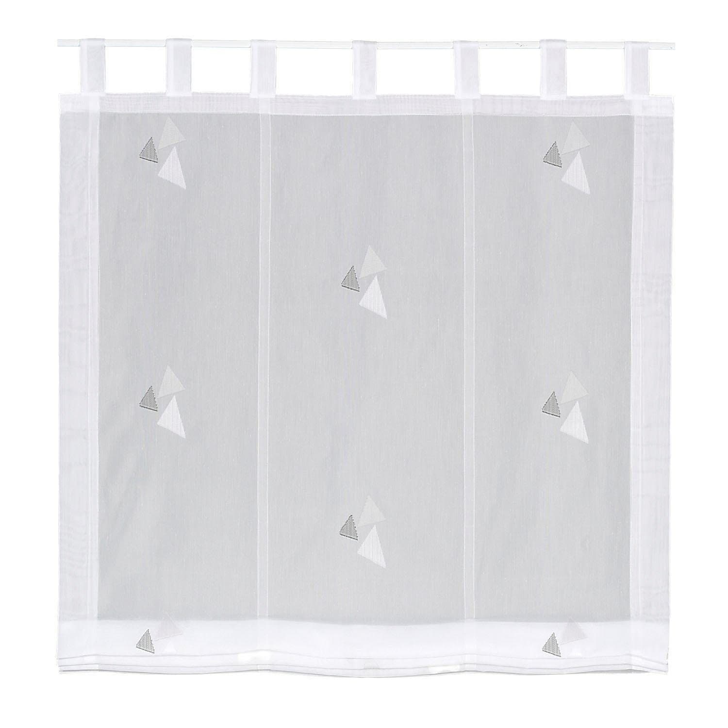 Das Raffrollo Rahel mit einer Schlaufenaufhängung ist mit seiner matten, halbtransparenten Grundware der perfekte Sichtschutz für Ihren Wohnbereich. Durch das moderne Scherli Design mit Dreiecken passt das Raffrollo in jeden Raum und zu jedem Einrichtungsstil. Die Schlaufen passen auf nahezu jede handelsübliche Gardinenstange bis zu einem Durchmesser von 30mm. Durch den mitgelieferten Beschwerungsstab hat das Raffrollo einen schönen und elegeganten Fall und kann mit Hilfe eines Feststellers an der gewünschten Höhe fixiert werden.