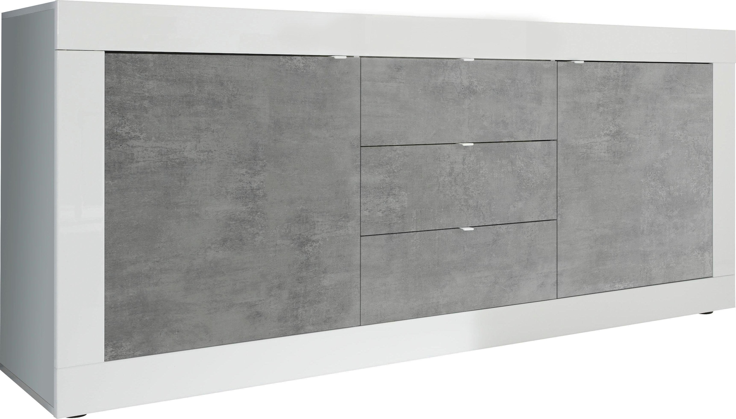 Farbbezeichnung | weiß Hochglanz Lack/Beton-Optik |