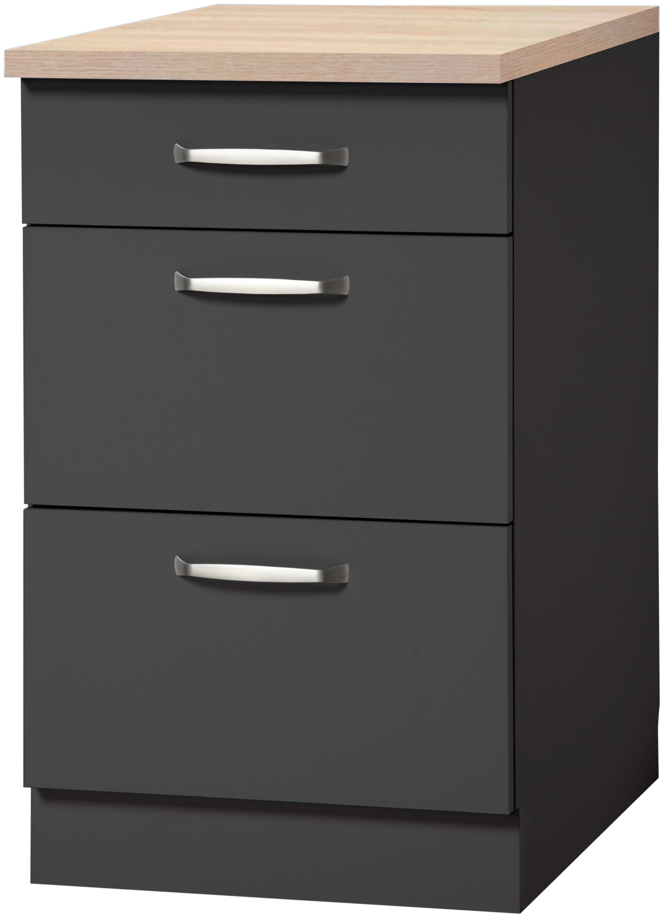Farbbezeichnung | Front und Korpus: Anthrazit, Arbeitsplatte: Sonoma Eiche |