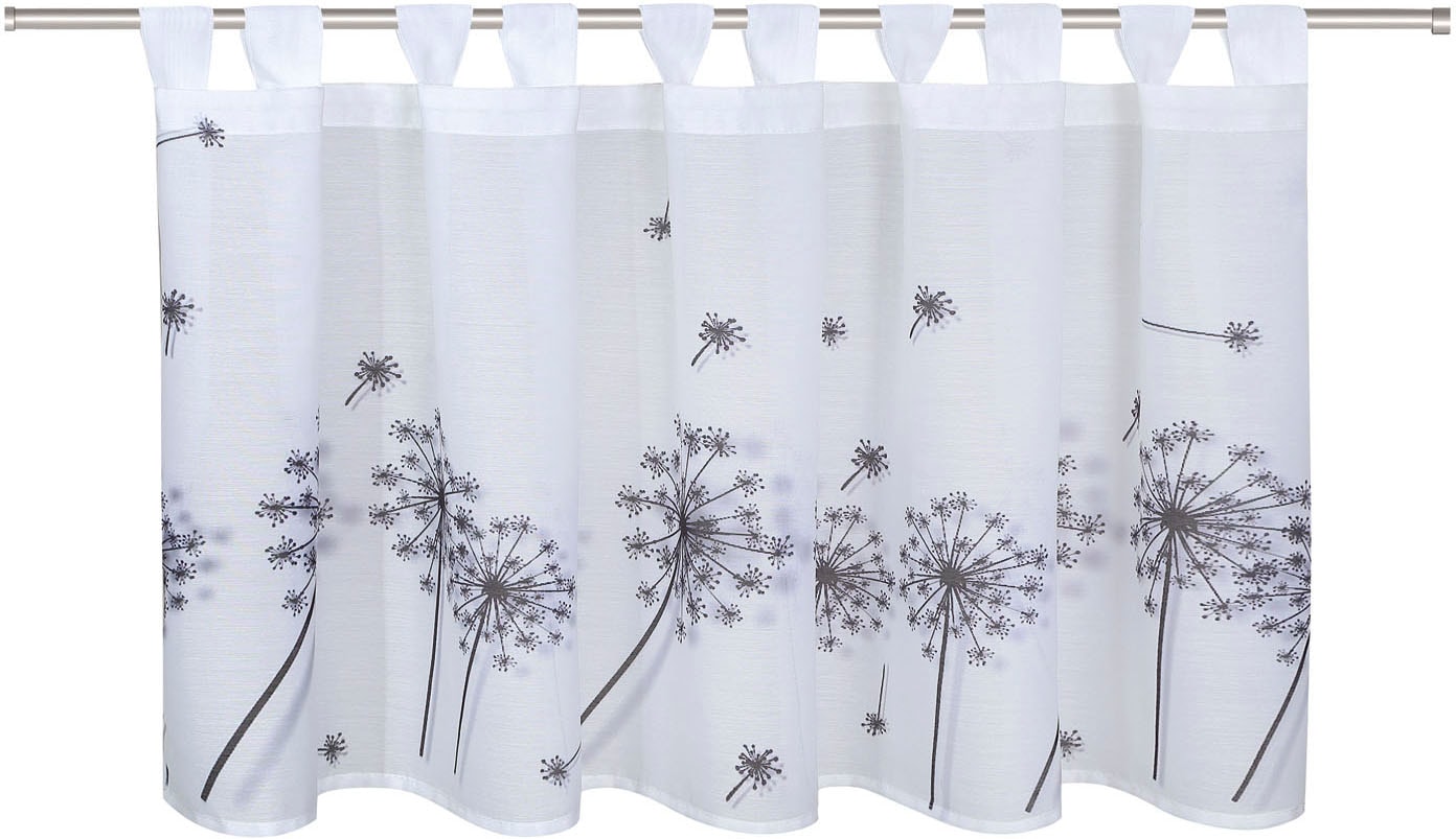 Mit dem Schlaufenbistro CHRISTINA eignet sich besonders gut für die Fensterdekoration im Wohn- und Esszimmer. Der transparente Stoff ist geprägt von seinem modernem und feinen Pusteblumen Druckdesign. Mithilfe der 10 angenähten Schlaufen kann das Schlaufenbistro an jeder handelsüblichen Scheibenstange angebracht werden.