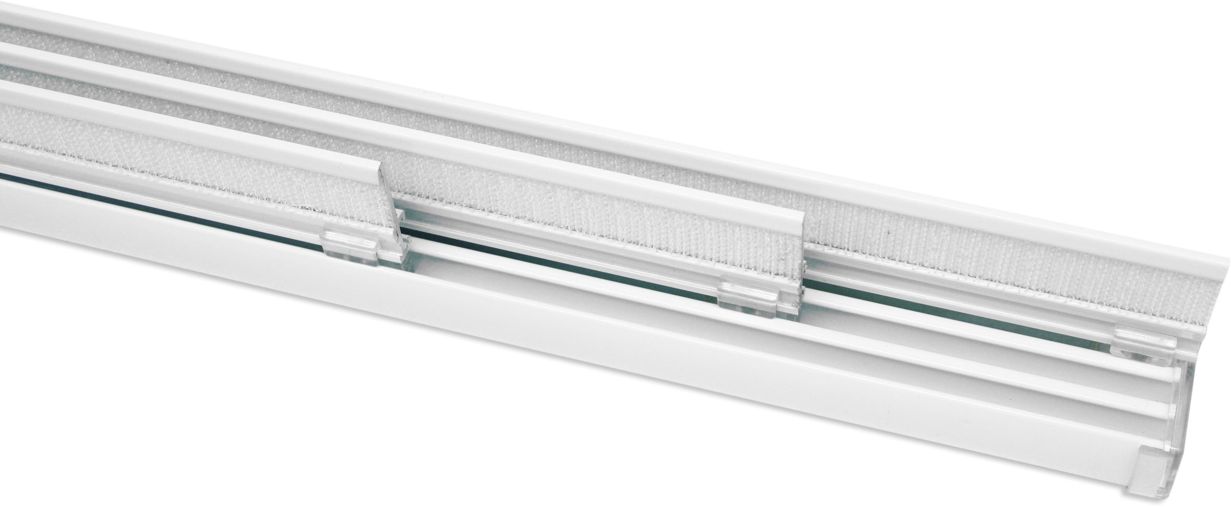 - komplett mit Paneelwagen inkl. Klettband, Beschwerungsprofile mit Endkappen, Mitnehmer für Paneelwagen, Träger für Wand- und Deckenmontage und Aluminiumschleuderstab 100 cm