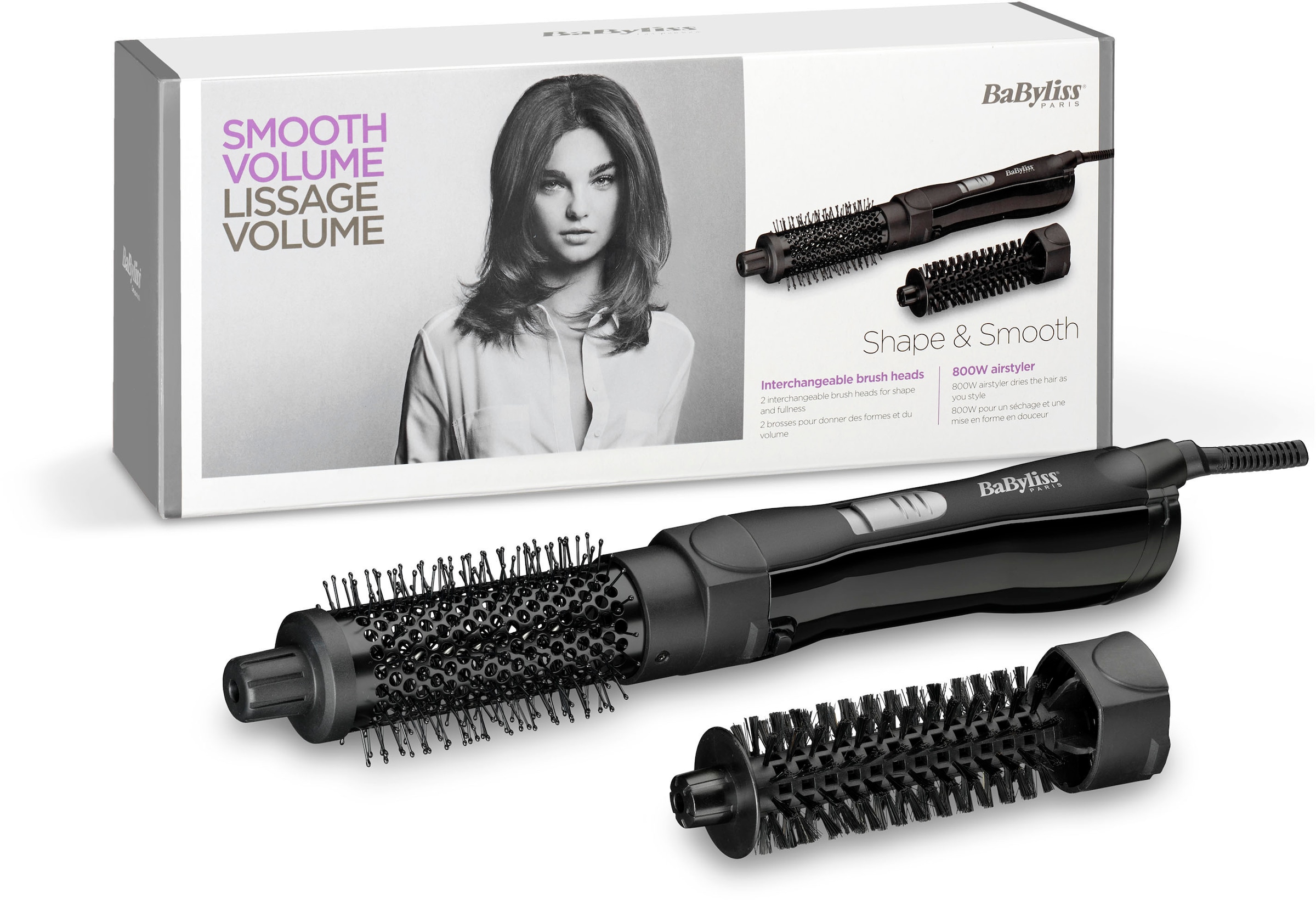 BaByliss Warmluftbürste »AS82E Shape & Smooth« 2 Aufsätze mit 2 Aufsätzen