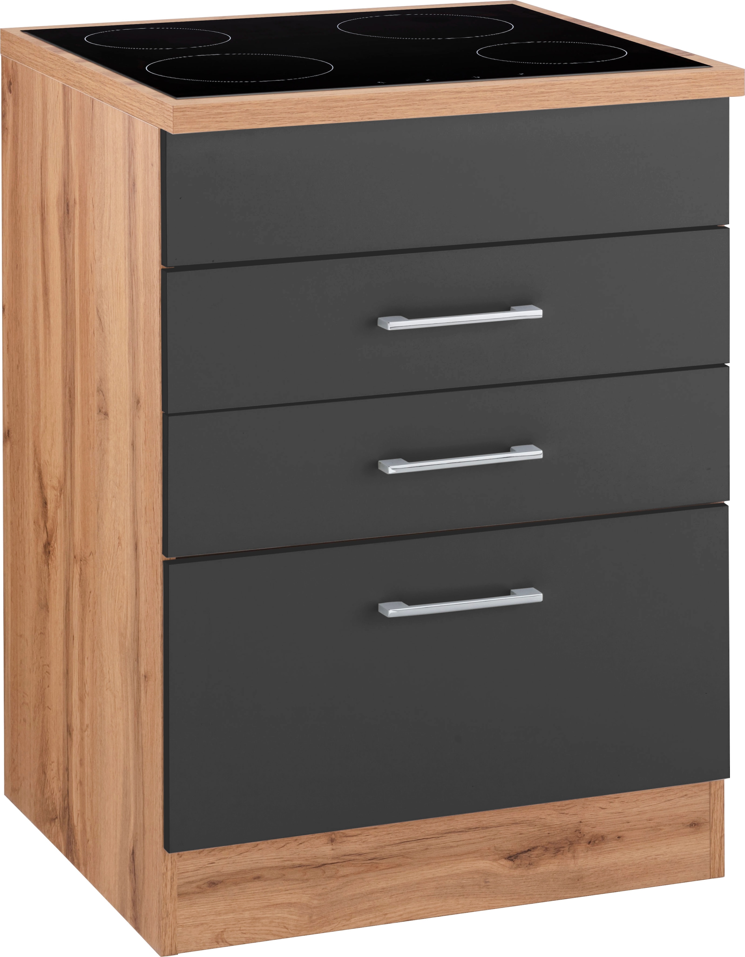 KOCHSTATION Kochfeldumbauschrank »KS-Colmar« 60 cm, mit Metallgriff, 2 Schubkästen und 1 Auszug