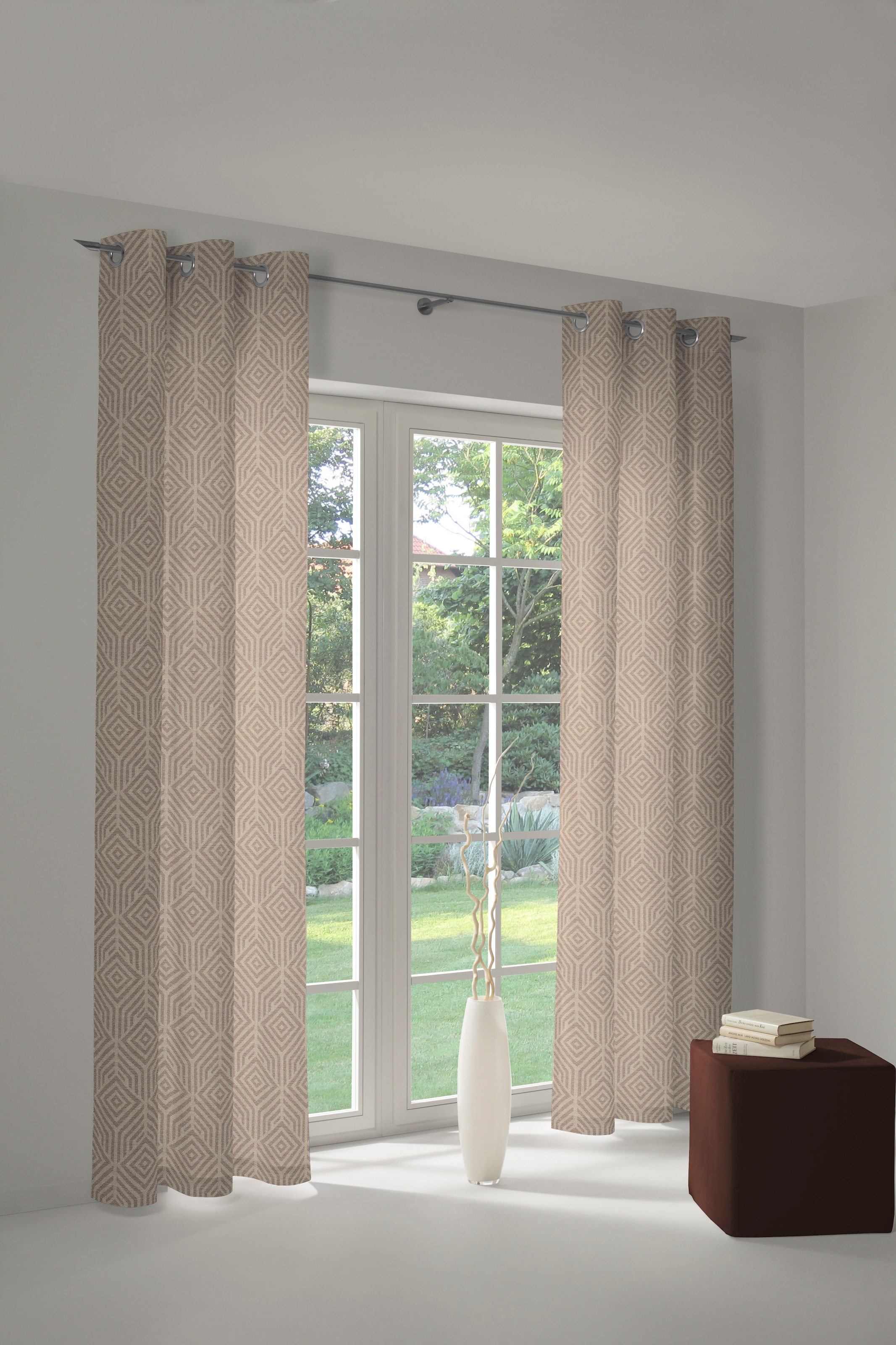 Vorhang Easy Diamond aus 100 % Bio-Baumwolle, Kräuselband (1 St) – Blickdichte Vorhänge mit dezentem Diamantmuster