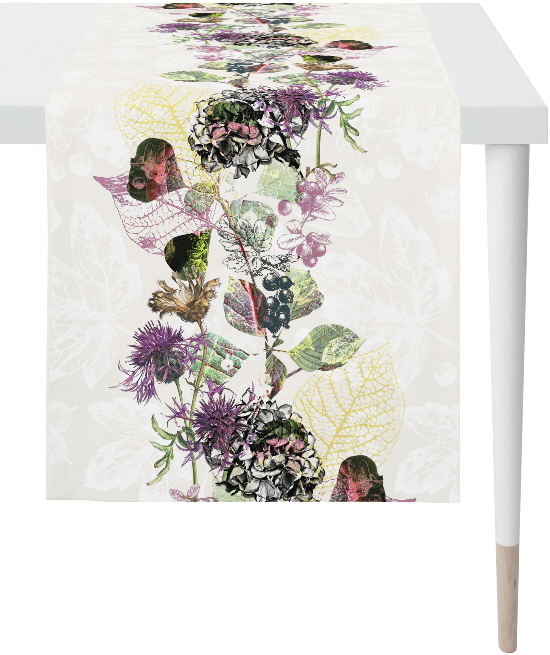 Herbstliches Blüten-Motiv aus dem Hause Apelt. Ein wunderschönes, modern gestaltetes Blüten-Allover, das den Spätsommer ins Haus holt. Der hochwertige Tischläufer mit feinem Digitaldruck ist erstklassig verarbeitet und sorgt für eine schöne Atmosphäre. Er passt perfekt zur herbstlichen Tischdekoration und ist überall ein echter Blickfang. Waschbar bei 30°C im Schonwaschgang, feucht aufhängen. Material: 100% Baumwolle.