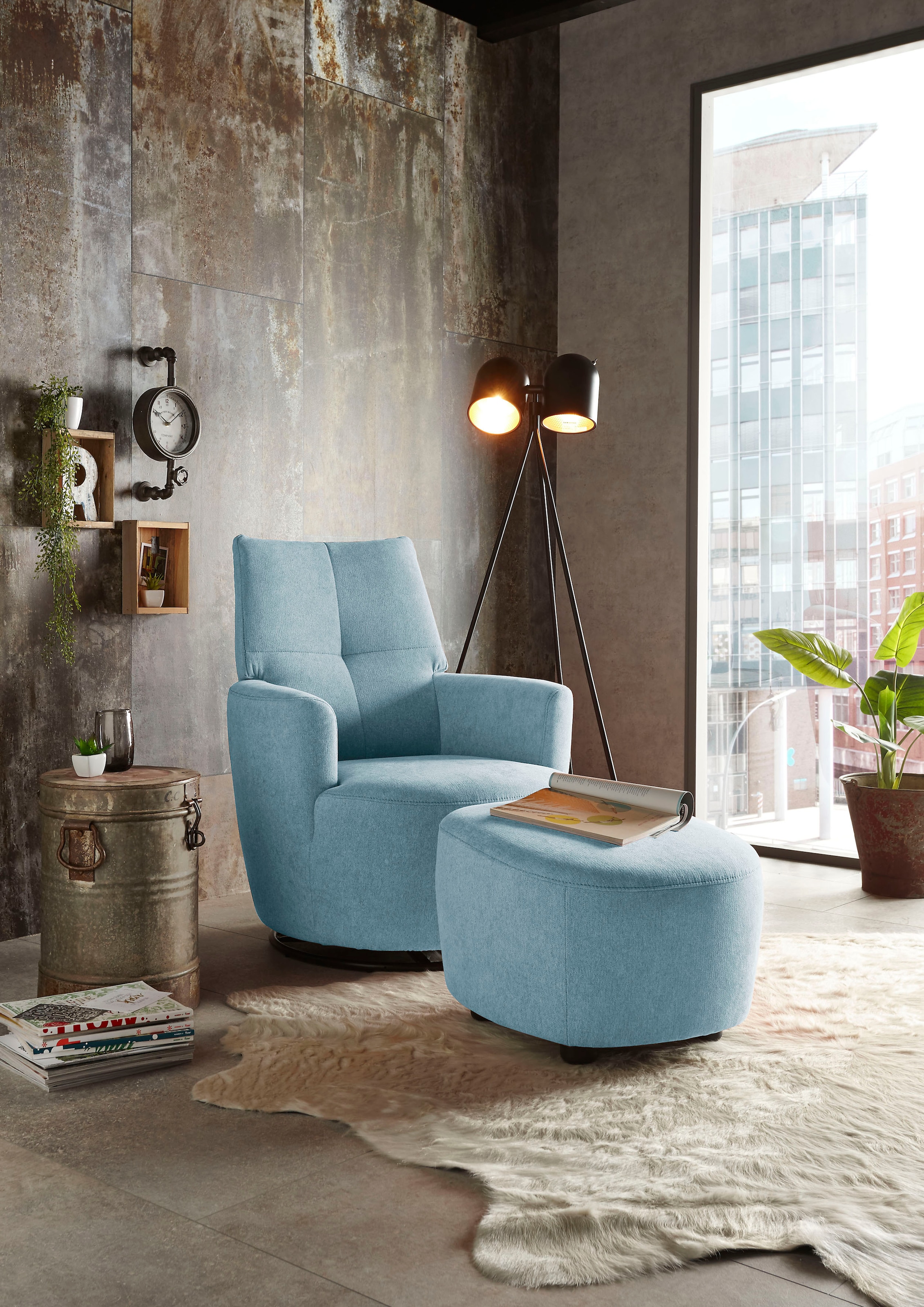 - Sessel mit Dreh- und Wippfunktion, wahlweise mit Hocker erältlich