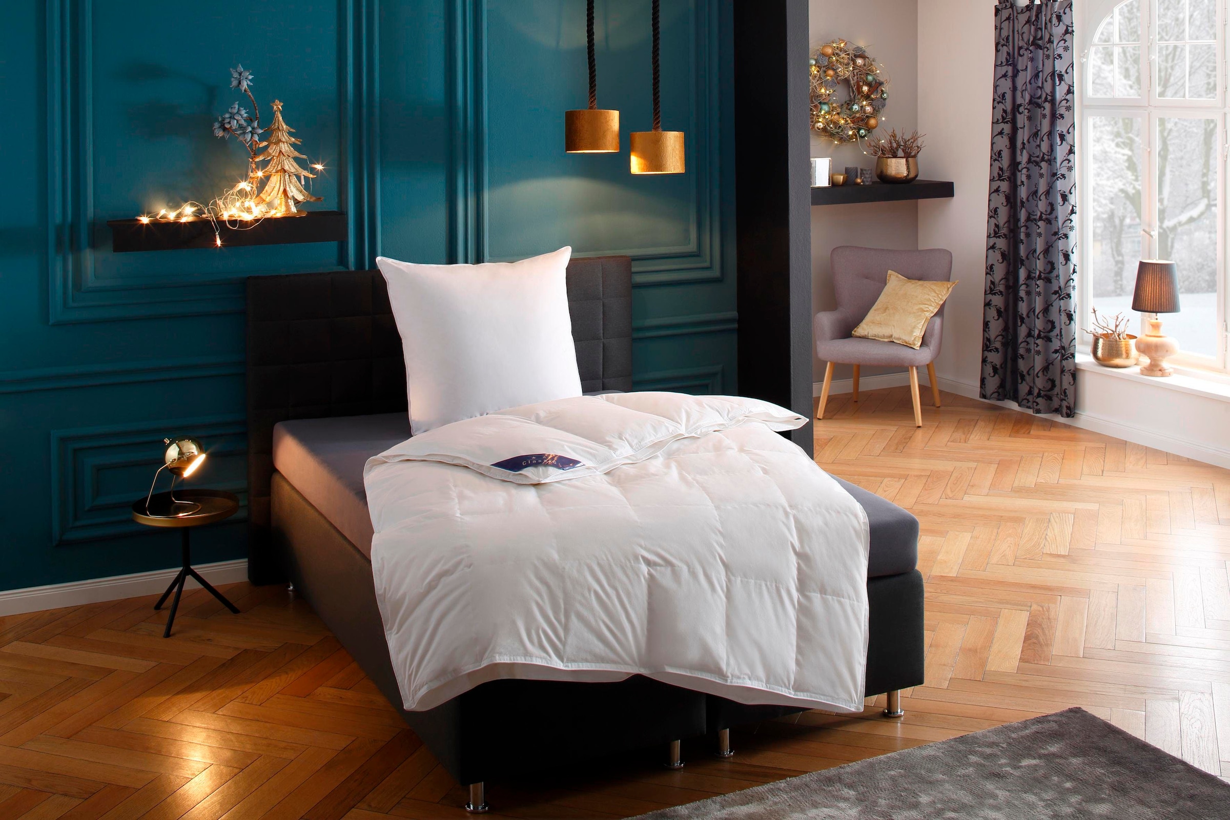 Materialzusammensetzung | Bezug: 100% Baumwolle. Füllung: 70% Federn, 30% Daunen. Füllung 2: 85% Federn, 15% Daunen. Kopfkissen Füllung: 90% Federn, 10% Daunen |