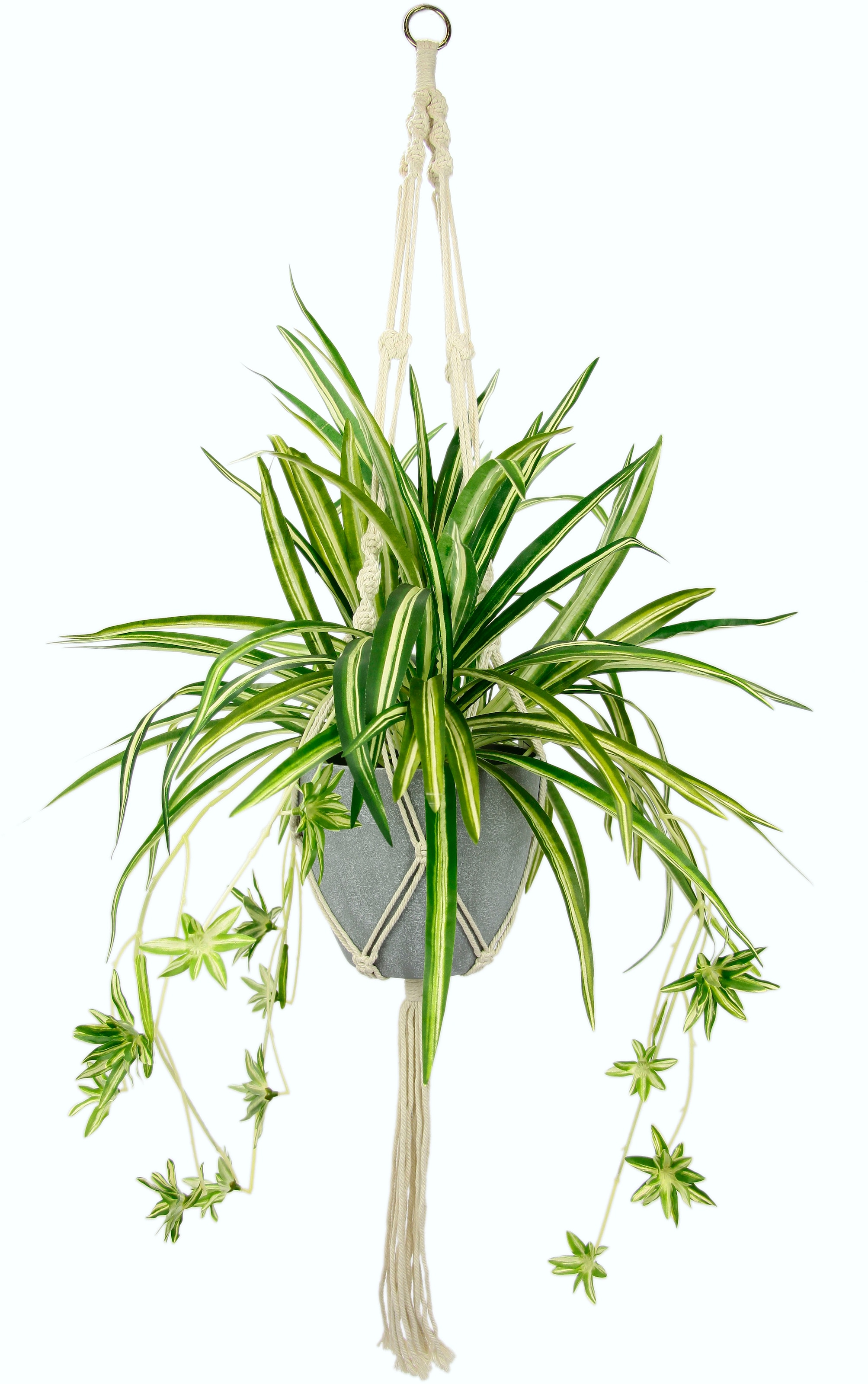 Ein apartes Wohnaccessoire im Zuhause ist diese Kunstpflanze »Wasserlilie«. Die täuschend echt wirkende Wasserlilie ist detailreich verarbeitet und mit ihren typischen langen Blättern und Blüten versehen. Eingefasst ist die künstliche Zimmerpflanze zudem in einem Topf mit Hängeampel. Je nach individuellen Einrichtungsvorlieben lässt sie sich an der Decke oder Wand dekorieren. Hergestellt wird die hochwertig verarbeitete Kunstblume aus einem Material mit pflegeleichten Eigenschaften. Begeistert mit ihrem naturgetreuen Erscheinungsbild: die Kunstpflanze »Wasserlilie«.