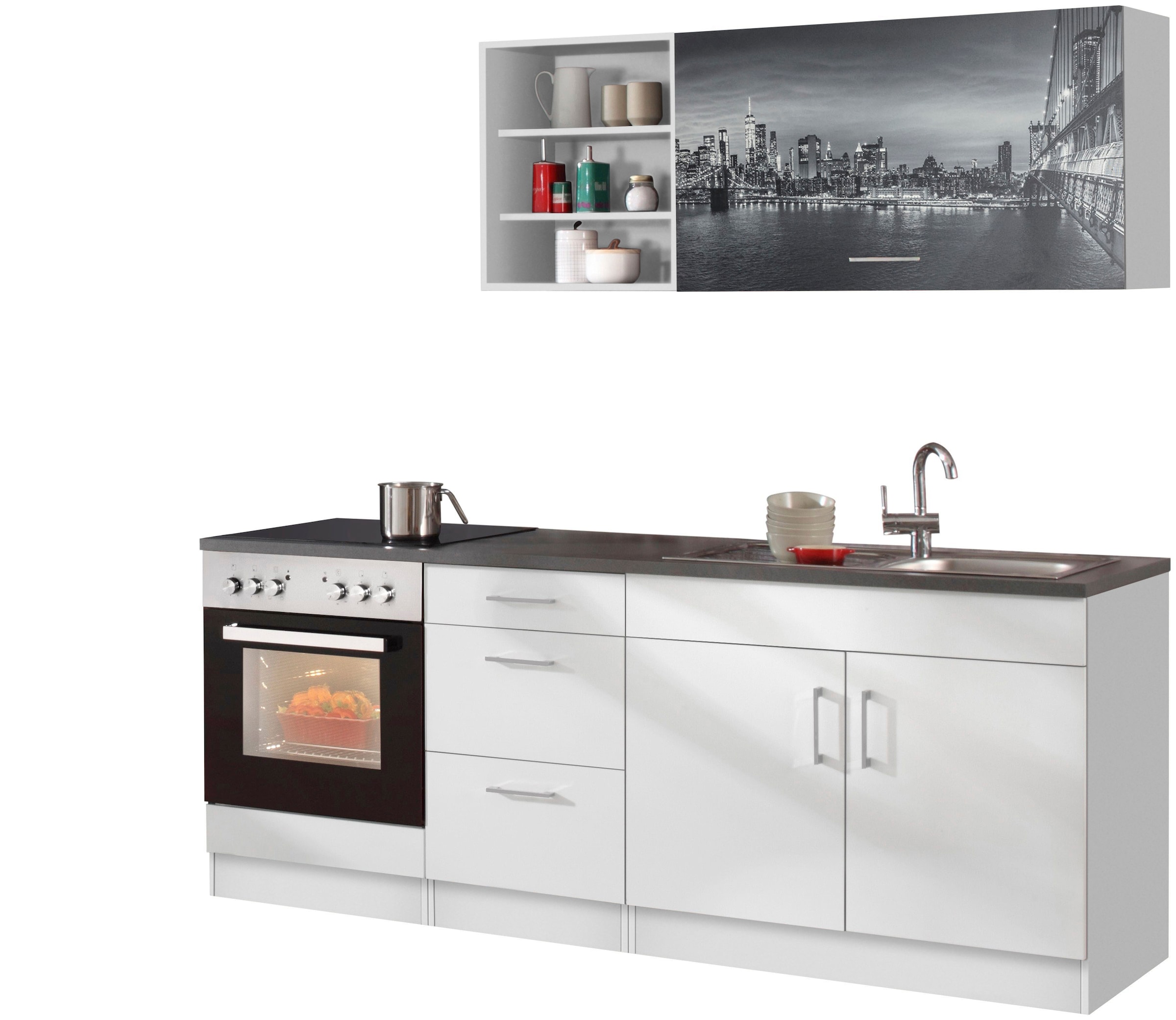 KOCHSTATION Küchenzeile »KS-Paris – Küchen mit einzigartigen Fotomotiven auf den Fronten« Stellbreite 220/280 cm, wahlweise mit E-Geräten, mit Motivdruck