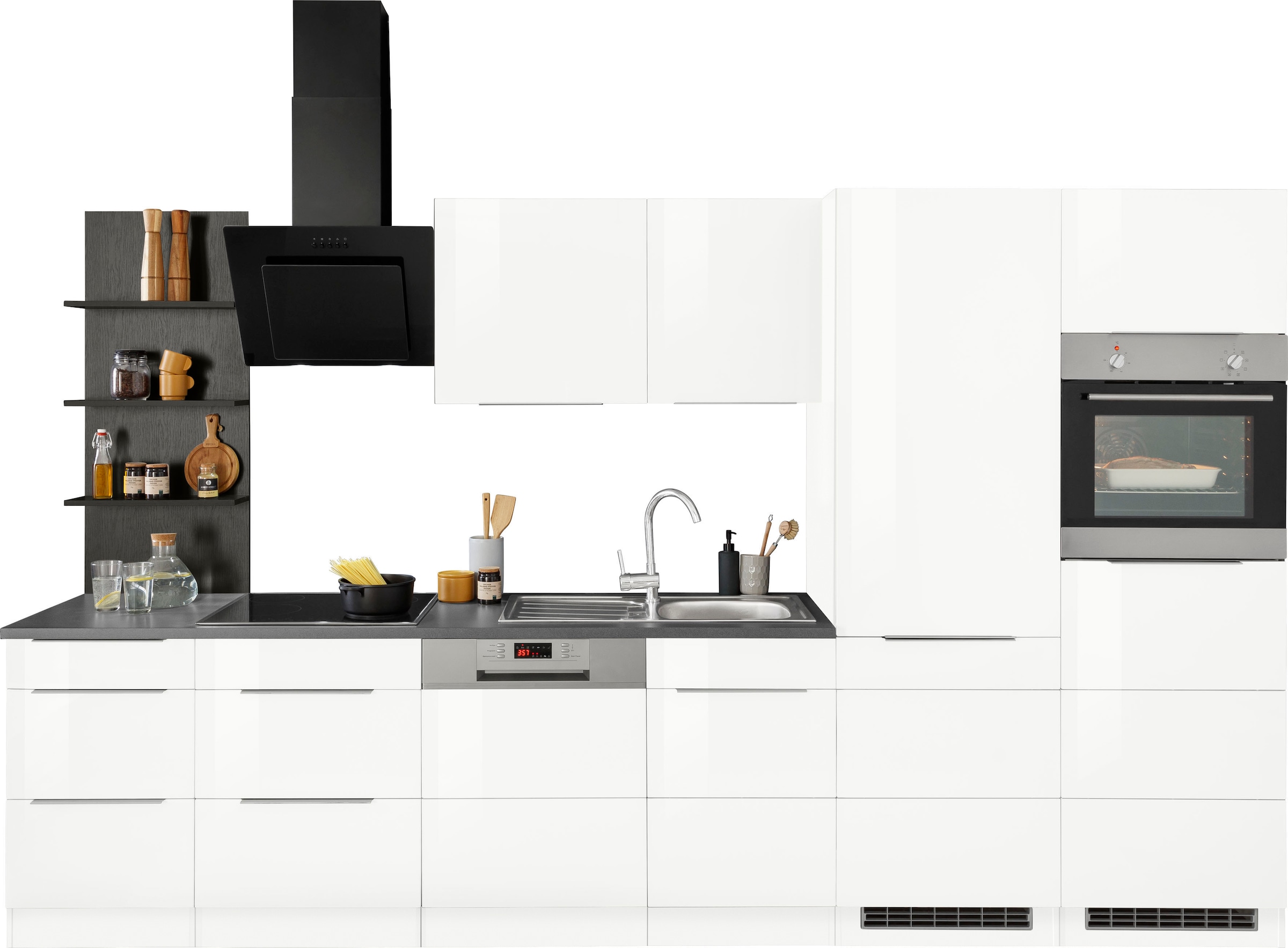 KOCHSTATION Küchenzeile »KS-Brindisi Breite 280 cm« wahlweise mit E-Geräten und Induktion, mit MDF-Fronten und Regal