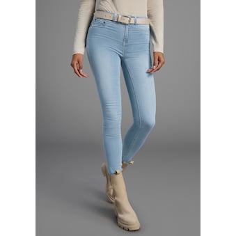 Facettenreiche Damen-Bootcut-Jeans der Marke Arizona im auffallenden Used-Look mit lässig abgetragenen Details. Enganliegendes Hosenbein mit ausgestelltem Verlauf ab dem Knie und hohe Leibhöhe. Dank der robusten Jeansqualität ist die Hose sehr pflegeleicht und strapazierfähig.