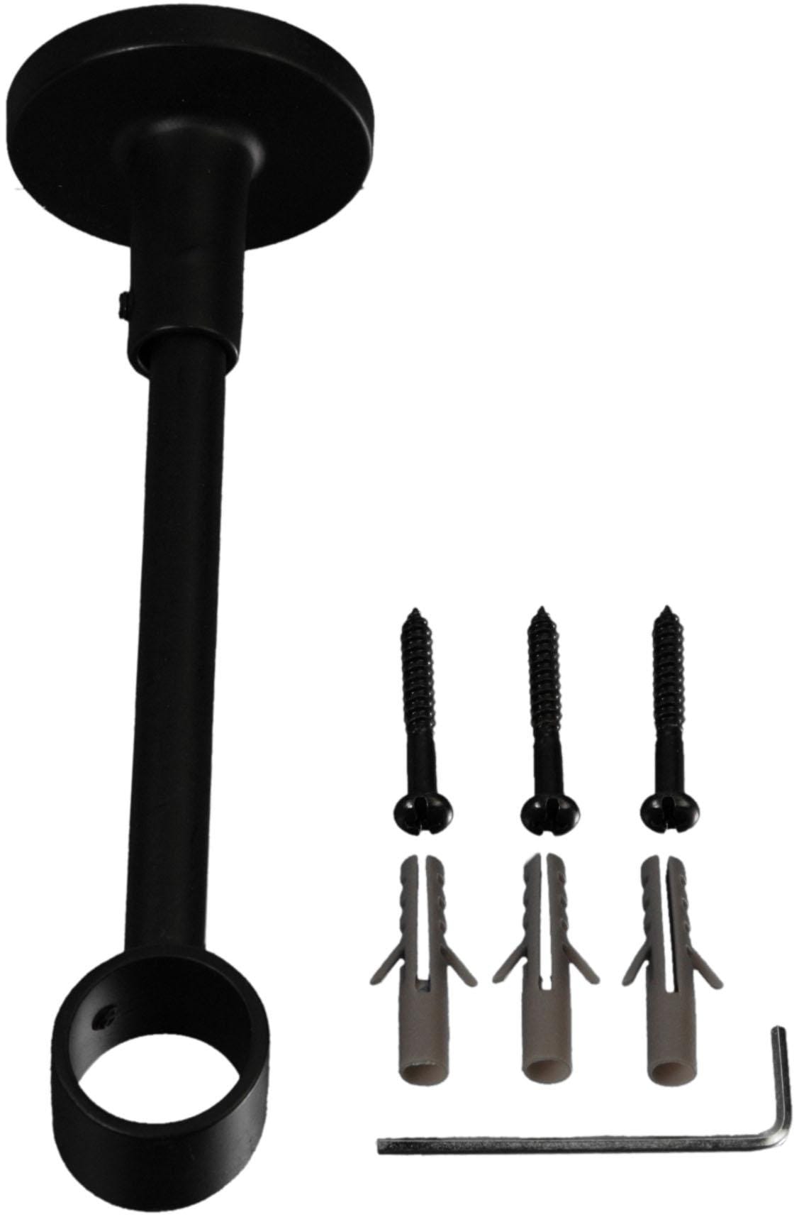 Beschreibung | Metall, kürzbar, für Dekorationen mit einer Gardinenstange, mit Metallmontageplatte, inkl. Befestigungsmaterial, Trägerlänge (Wandabstand der Gardinenstange) 12 cm |