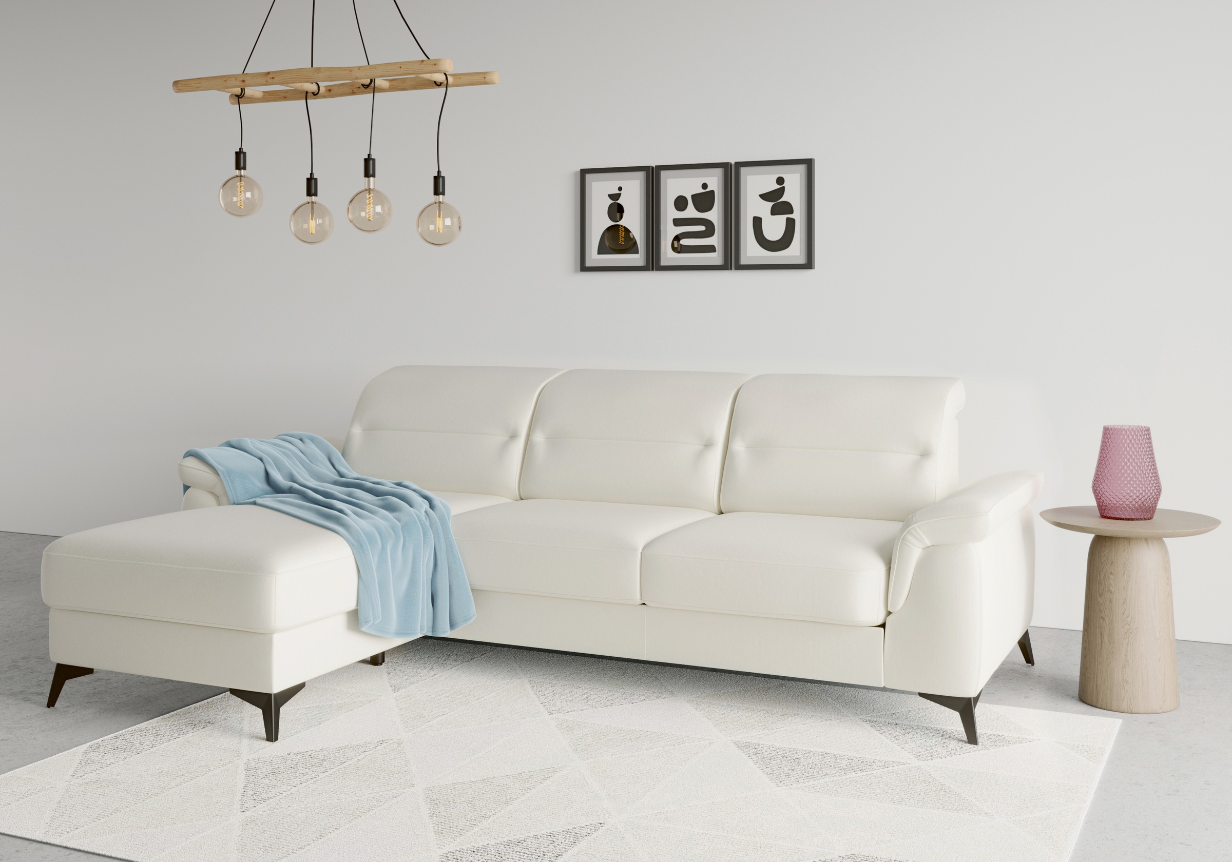 sit&more Ecksofa »Dundee L-Form« mit Federkern und Edelstahlfüßen, wahlweise mit Kopfteilverstellung