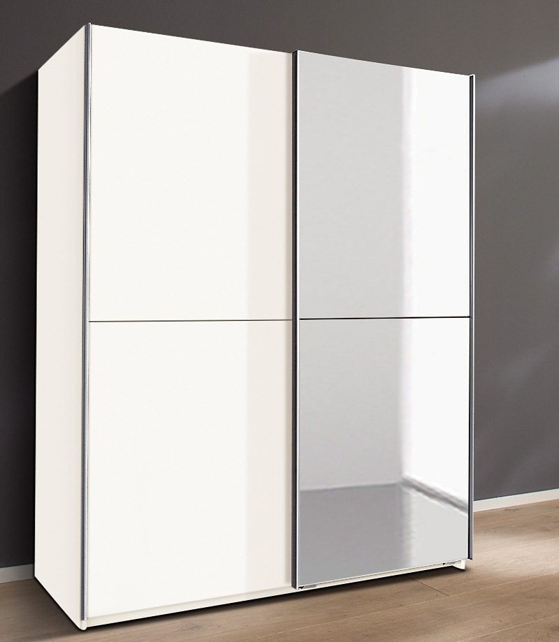 - Zeitloser Schwebetürenschrank mit 1 Spiegel- und 1 Glastür