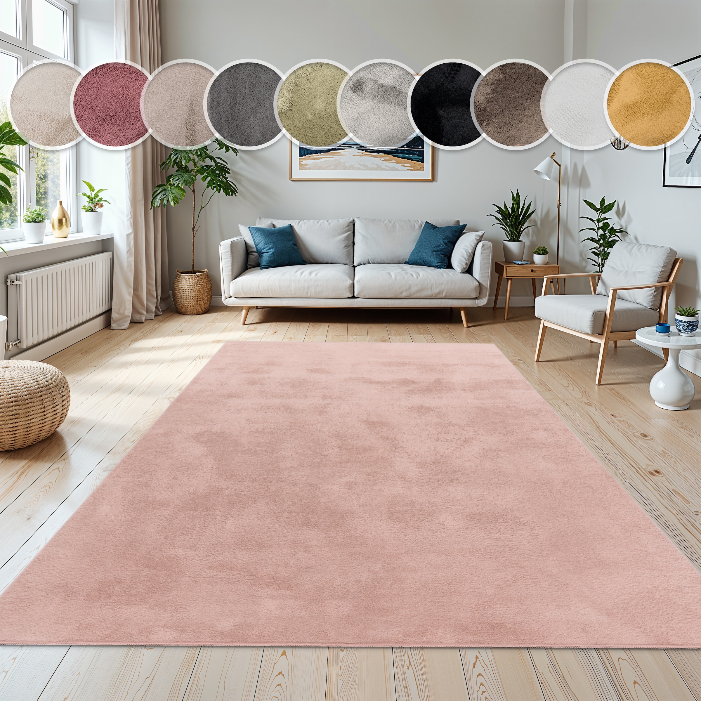 Paco Home Fellteppich »Rabbit 780« oval 26 mm Höhe Kunstfell, Kaninchenfell-Haptik, ein echter Kuschelteppich, Uni-Farben