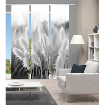 Hinweis Dekoration | Die angegebenen Maße sind die fertig dekorierten Maße.;Eine Schiebegardine ist eine schmale, glatt hängende Stoffbahn, die sich sowohl als Sichtschutz als auch zur Raumteilung eignet. Durch die Schiebetechnik sind Schiebegardinen sehr flexibel einsetzbar. |
