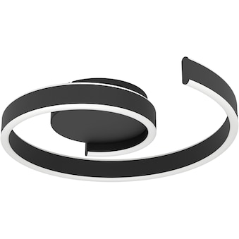 - Die LED-Deckenbeleuchtung mit abgehangenem, geschwungenem Profil aus schwarzem Metall lässt sich einfach per Bluetooth und AwoX App steuern