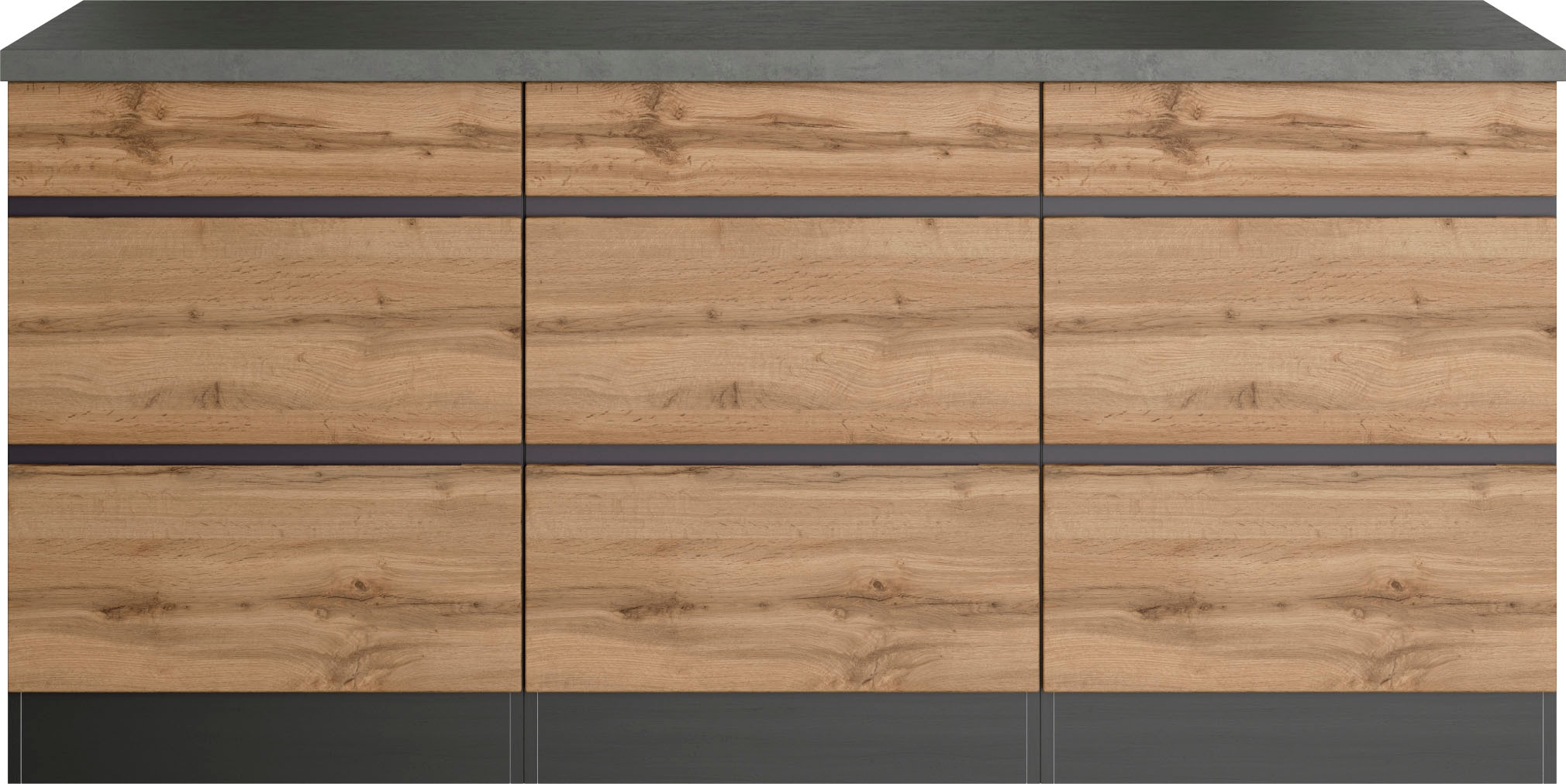 - Zweifarbige Fronten mit Griffmulde