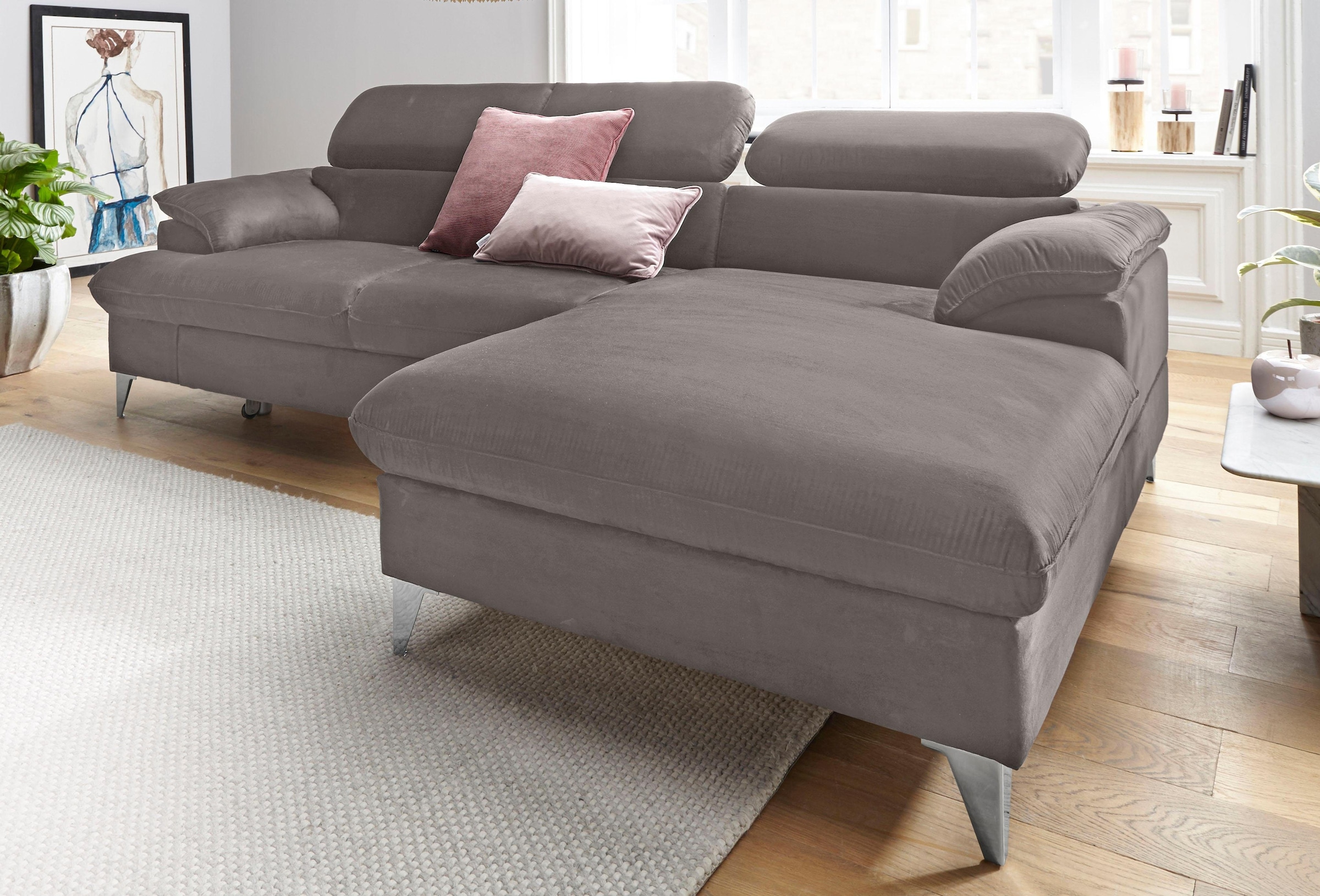 ATLANTIC home collection Ecksofa »Mailo L-Form« mit Seitentaschen, Recamiere beidseitig montierbar, Massivholzfüße