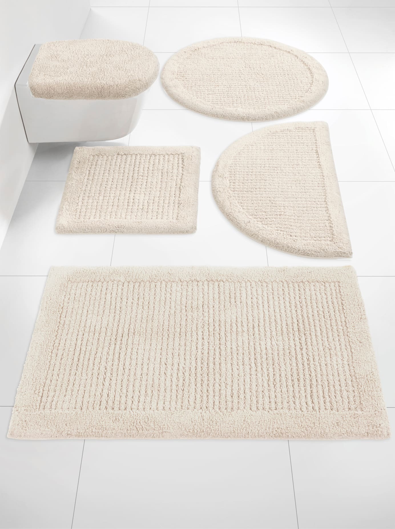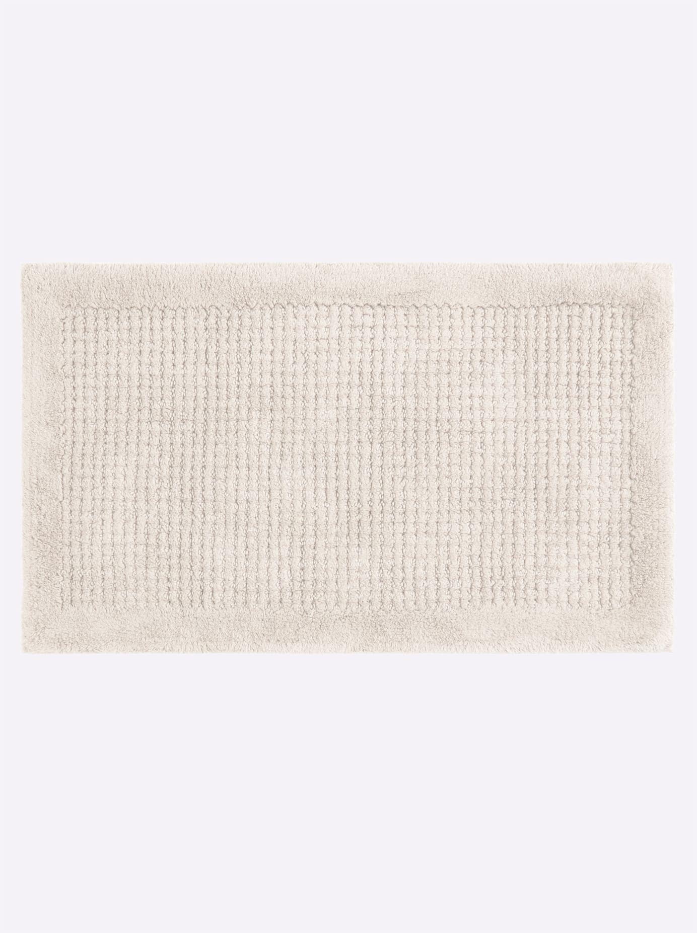 Badematte Schwere Qualität. In Hoch-/Tief-Struktur. Fußbodenheizung geeignet. Aus 100% Baumwolle. Maschinenwäsche bis 40 °C.