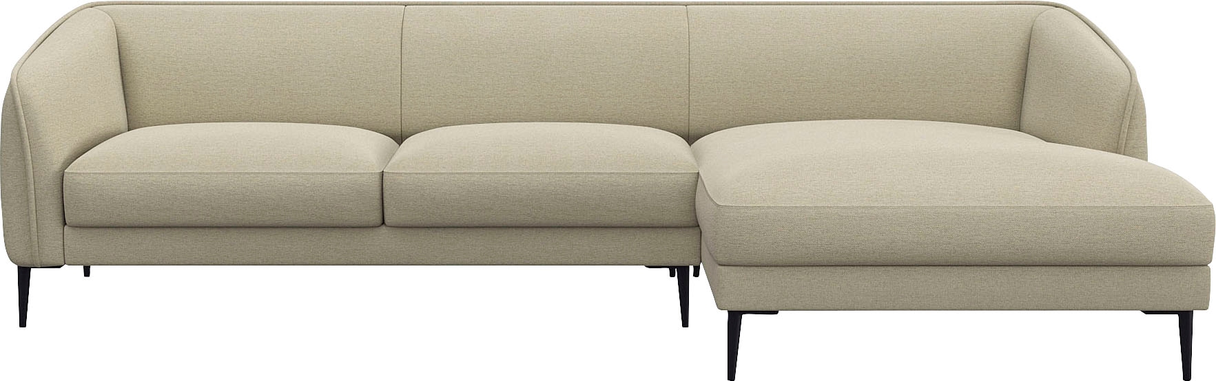 Sofa Belle ist eine moderne Designikone. Die weichen Linien und die schlichte Silhouette kombiniert mit schwarzen Metallfüße spielen auf die Essenz des skandinavischen Designs an.