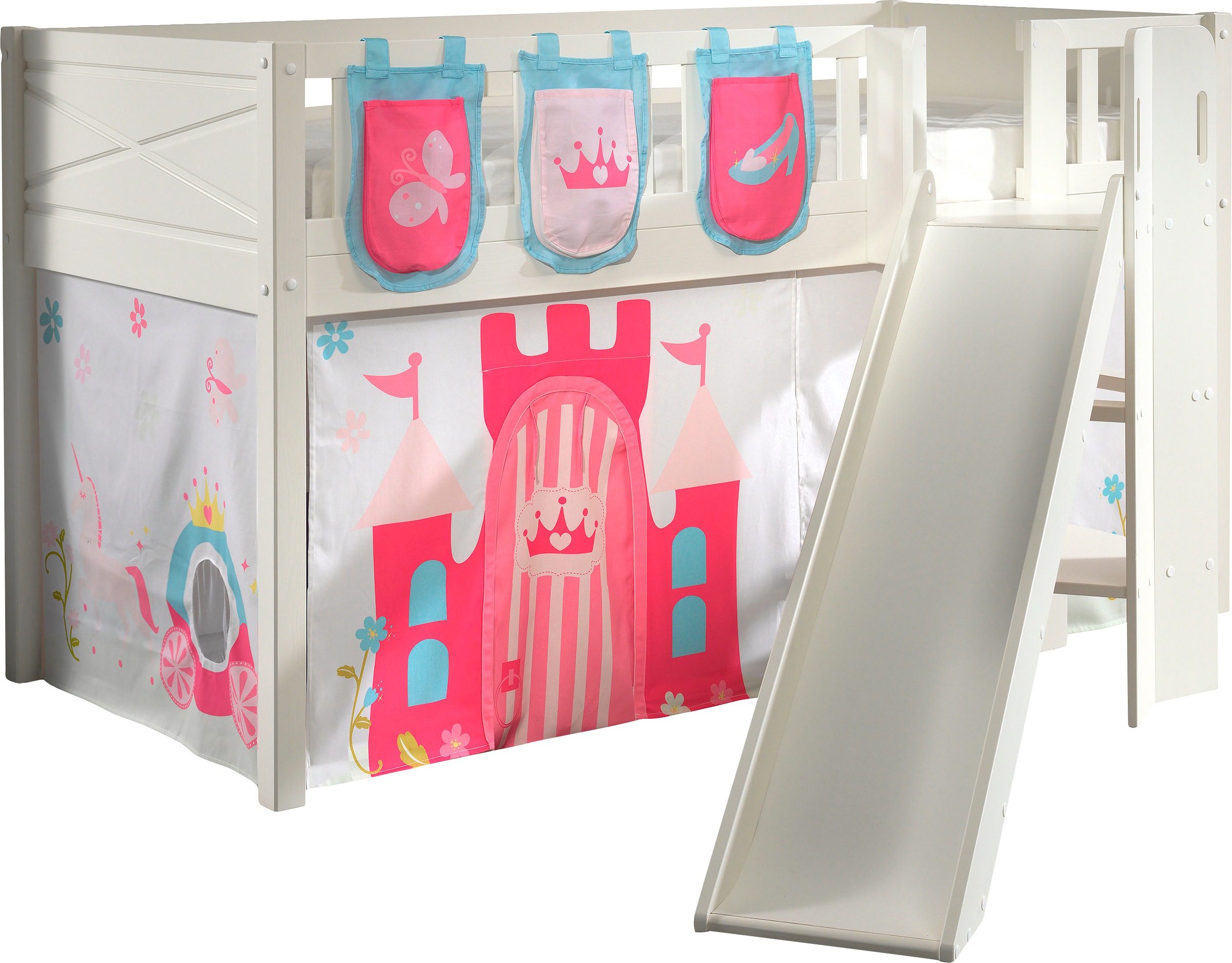 - Halbhohes Bett mit Rutsche und Leiter mit Grifflöcher