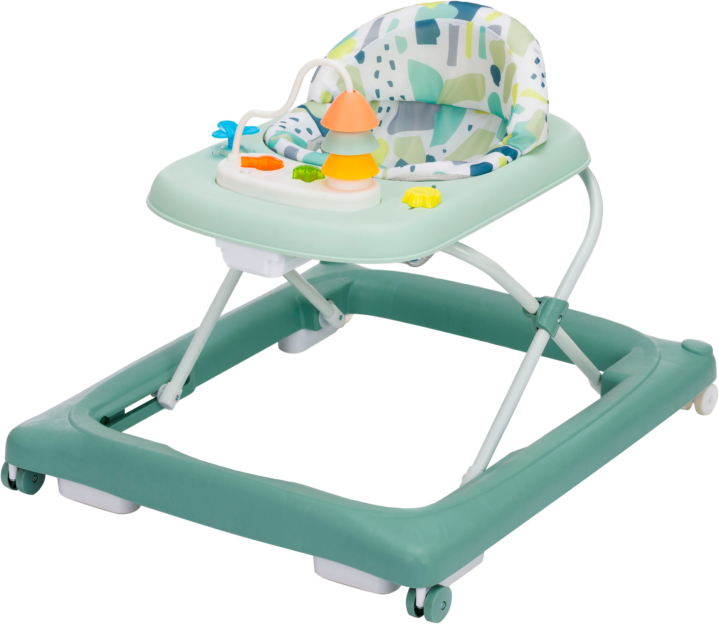 Der roba Schiebe- & Motorikbus »Paw Patrol« ist ein fantastisches Spielzeug für kleine Fans der beliebten Zeichentrickserie Paw Patrol. Mit einem Motiv in Blau und Weiß sowie Abbildungen der Serien-Helden Chase, Marshall, Rubble und Co. ist dieser Bus ein absoluter Hingucker für Fans der Serie. Der Schiebebus verfügt über verschiedene Spiele an den Seiten, die für jede Menge Abwechslung beim Spielen sorgen. Der Griff des Busses ist zugleich ein Rechenschieber in verschiedenen Farben, der dabei hilft, die mathematischen Fähigkeiten der Kinder zu fördern. Eine Uhr auf einer der Seiten hilft Kindern dabei, die Zeit zu lernen. Ein Drehspiel sorgt für Unterhaltung und fördert die Motorik. Auf einer anderen Seite gibt es Klappbilder mit Zeichentrickmotiven, die für jede Menge Spaß beim Entdecken sorgen. Neben den verschiedenen Spielmöglichkeiten ist der Schiebe- & Motorikbus von roba auch eine echte Lauflernhilfe. Die Gummirollen sind feststellbar und sorgen dafür, dass das Kind den Bus sicher schieben und lenken kann. Der Griff ist ergonomisch geformt und bietet dem Kind einen sicheren Halt. Der Schiebebus unterstützt die Kleinen beim Lernen des Laufens und fördert dabei ihre motorischen Fähigkeiten. Ein weiteres besonderes Merkmal des Schiebebusses ist der großzügige Stauraum im Innenraum des Schiebewagens. Kinder können ihre Lieblingsspielzeuge und Plüschtiere mitnehmen und haben so immer alles dabei, was sie brauchen. Der Bus ist auch ideal für kleine Abenteuer im Freien oder den Besuch von Freunden und Familie. Mit einer Höhe von 53,5 cm, einer Breite von 55 cm und einer Tiefe von 34 cm ist der Schiebebus von roba ein ideales Spielzeug für Kinder ab einem Alter von 12 Monaten. Er ist robust und stabil gebaut, um den Herausforderungen des täglichen Spielens standzuhalten. Insgesamt ist der Schiebewagen von roba ein tolles Spielzeug für alle kleinen Fans von Paw Patrol. Mit verschiedenen Spielen und Funktionen fördert er die motorischen Fähigkeiten, die Kreativität und die Fantasie von Kindern. Gleichzeitig ist er eine sichere und stabile Lauflernhilfe, die Kindern hilft, ihre ersten Schritte zu machen. Der Schiebebus von roba ist ein tolles Geschenk für jeden Anlass und wird Kindern viele Stunden Freude bereiten.