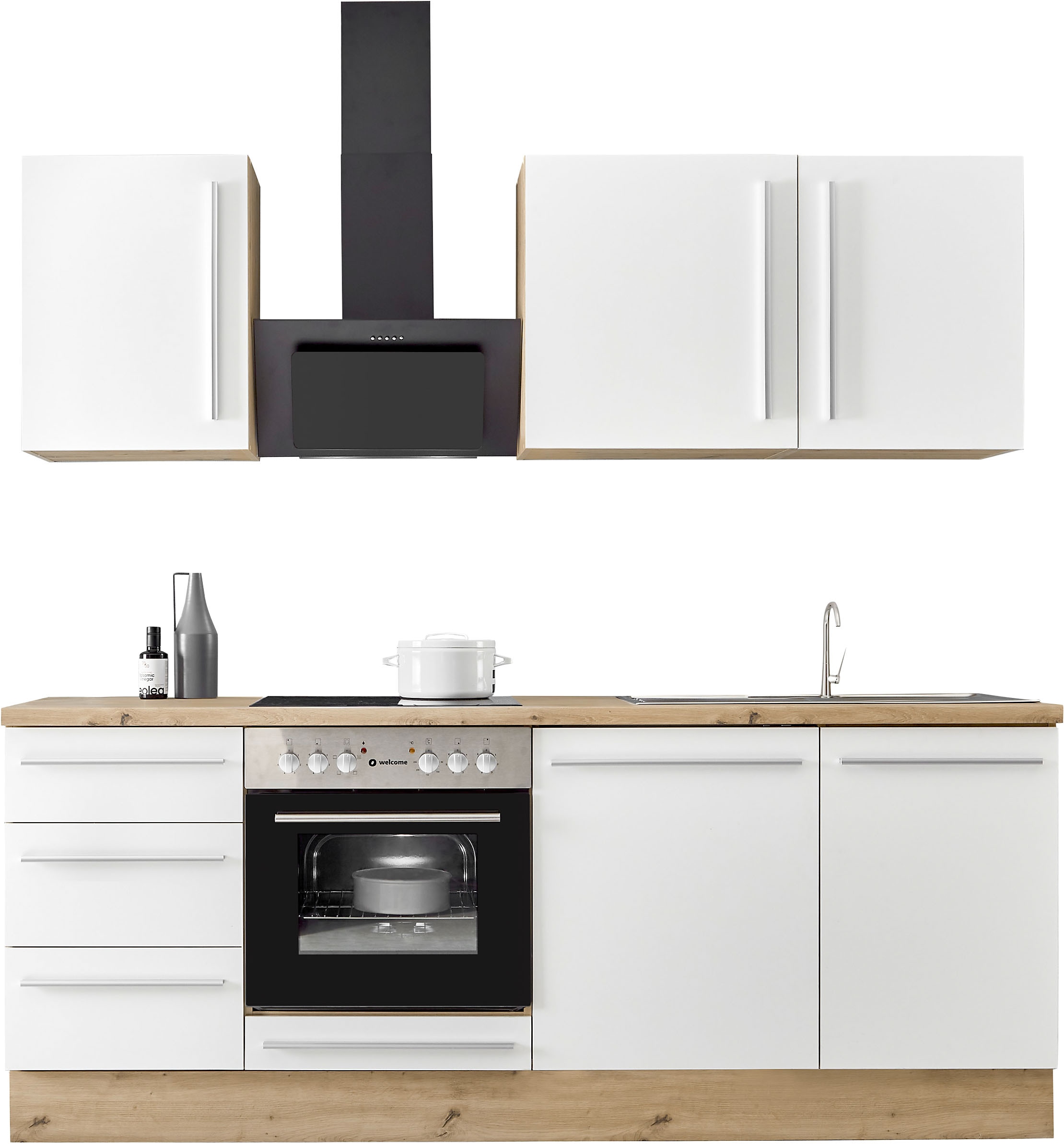 KOCHSTATION Küchenzeile »KS-Florida mit 38mm starker Arbeitsplatte« Breite 220 cm, wahlweise mit E-Geräten, Soft-Close-Funktion
