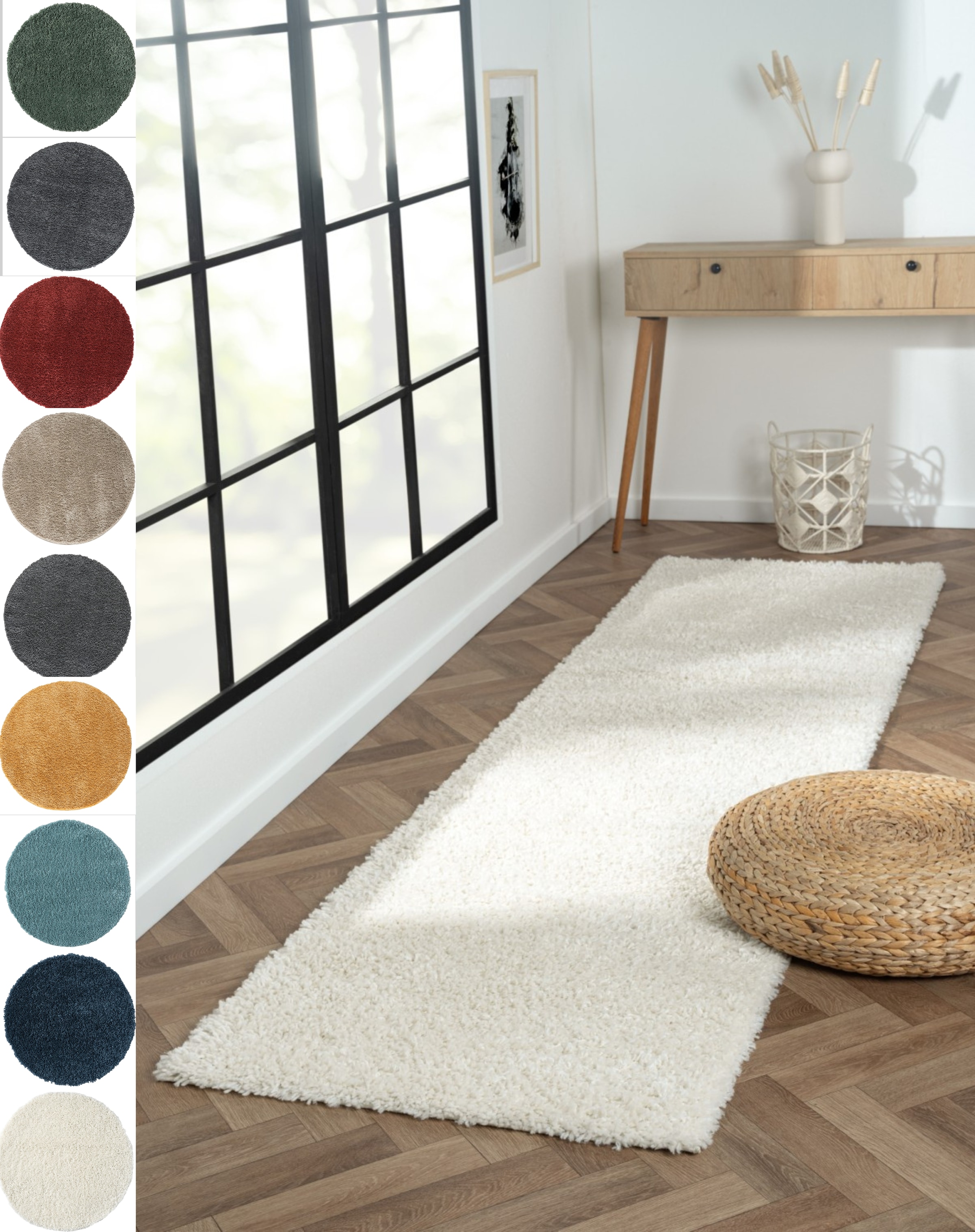 Maschinell gewebter Teppich | Beim Auslegen des Teppichs kann durch das Aufrollen der Teppich etwas wellig erscheinen, dieses legt sich nach kurzer Zeit aus. Sie können dieses etwas beschleunigen wenn Sie den Artikel in gegenläufiger Richtung nochmals aufwickeln. |