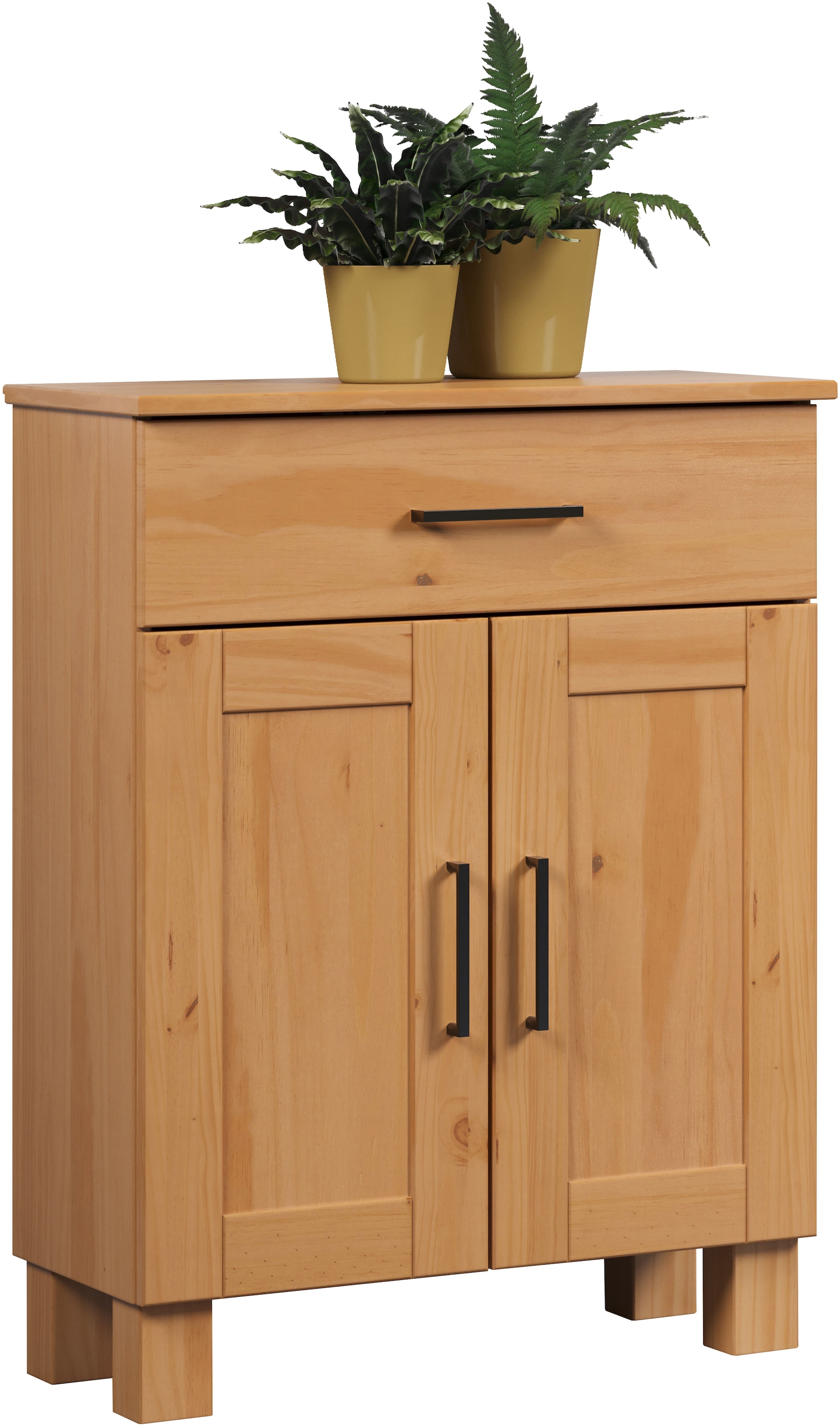 - Aus massivem Kiefernholz und mit einer weißen/braunen Lackierung versehen, ist der Badschrank nicht nur stabil, sondern fügt sich auch harmonisch in dein Badezimmer ein