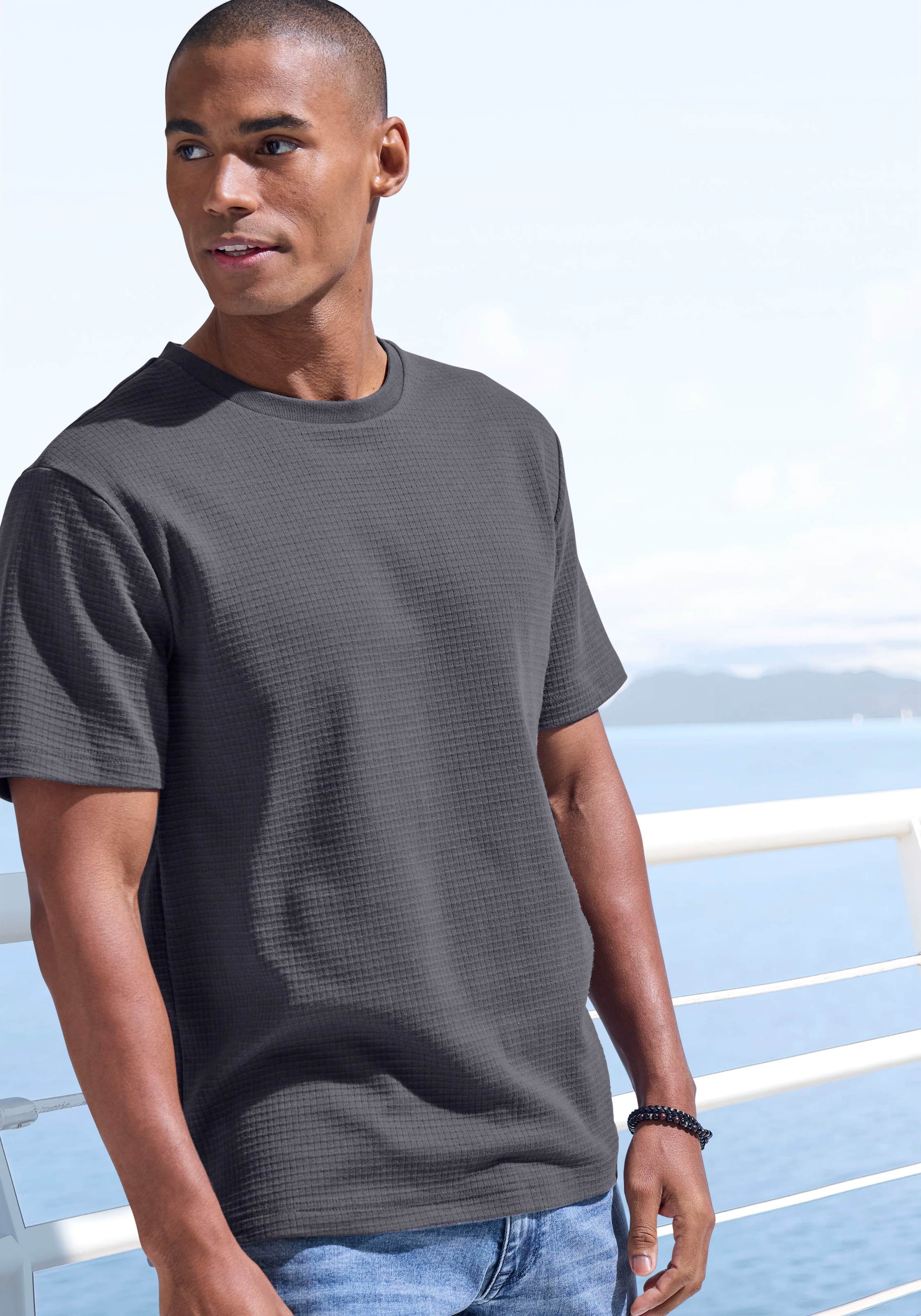 John Devin T-Shirt »mit Struktur« Rundhalsshirt mit Struktur aus Baumwoll-Mix