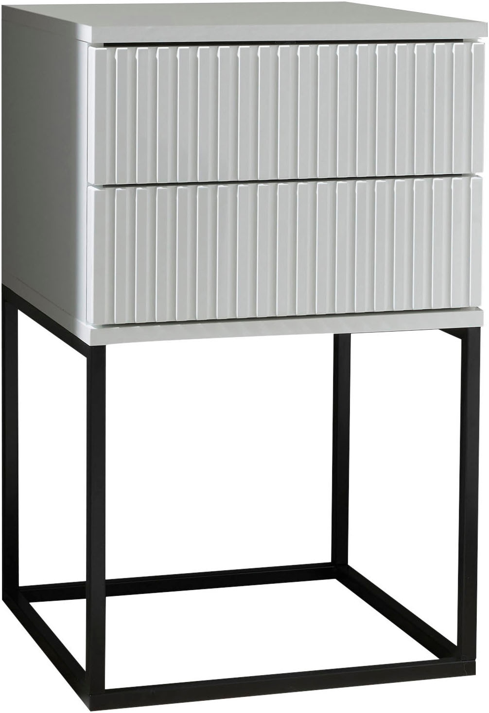 Schlafkontor Nachtkommode »Marle Nachtkonsole, Nachtkästchen auf Metall-Fußgestell« Schubkasten in Rillenoptik auf schwarzem Metallgestell