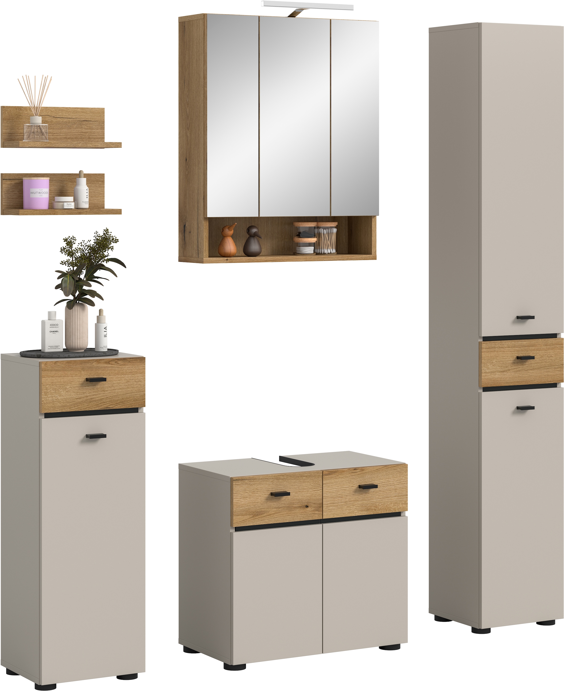 - 2-teiliges Set: 1x Waschbeckenunterschrank und 1x Spiegelschrank