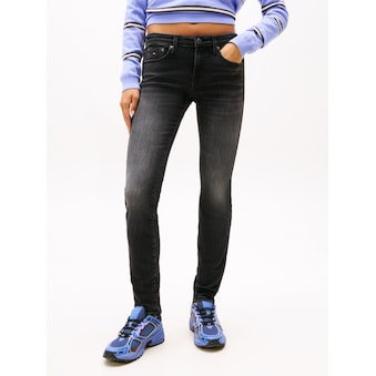 Figurbetonende Damen-Skinny-fit-Jeans der Marke Tommy Jeans. Mit extra enger Beinform sowie niedrig geschnittener Leibhöhe. Versehen mit einem Badge. Kombinierbar für erholsame Momente in der Natur oder beim Bummeln durch die Stadt. Die Hose ist durch den unempfindlichen und robusten Jeansstoff sehr pflegeleicht.