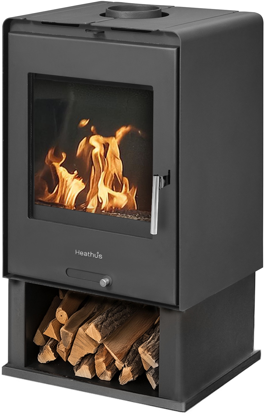 Kaminofen »Heathus »K 59« mit Holzfach« Kompakter Ofen mit Panorama Sichtscheibe