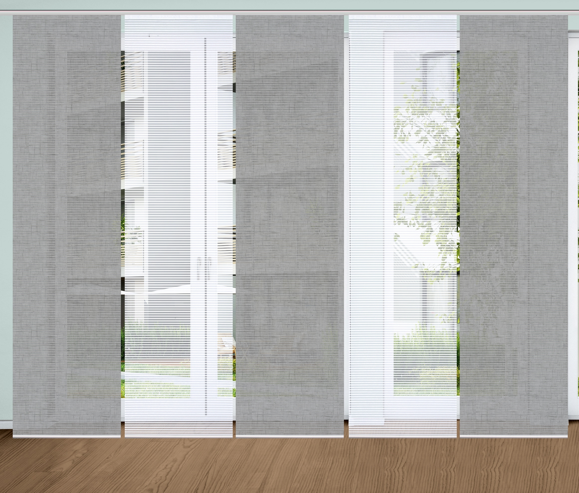 Hinweis Dekoration | Die angegebenen Maße sind die fertig dekorierten Maße.;Eine Schiebegardine ist eine schmale, glatt hängende Stoffbahn, die sich sowohl als Sichtschutz als auch zur Raumteilung eignet. Durch die Schiebetechnik sind Schiebegardinen sehr flexibel einsetzbar. |