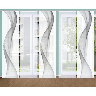 Hinweis Dekoration | Die angegebenen Maße sind die fertig dekorierten Maße.;Eine Schiebegardine ist eine schmale, glatt hängende Stoffbahn, die sich sowohl als Sichtschutz als auch zur Raumteilung eignet. Durch die Schiebetechnik sind Schiebegardinen sehr flexibel einsetzbar. |