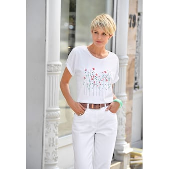 Gut kombinierbares Damen-Kurzarmshirt von HECHTER PARIS. Mit einem hüftlangen und figurumspielenden Schnitt. Damit lassen sich peppige und legere Looks kreieren. Durch den elastischen und weichen Jersey fühlt sich das Oberteil angenehm auf der Haut an.
