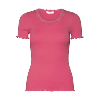 Kombistarkes Damen-Spitzenshirt der Marke rosemunde mit Retro-Charme. Mit einem hüftbedeckenden und engen Schnitt. Die Ärmel sind kurz. . Das Oberteil hat durch den zarten Spitzenstoff ein elegantes und verspieltes Element.